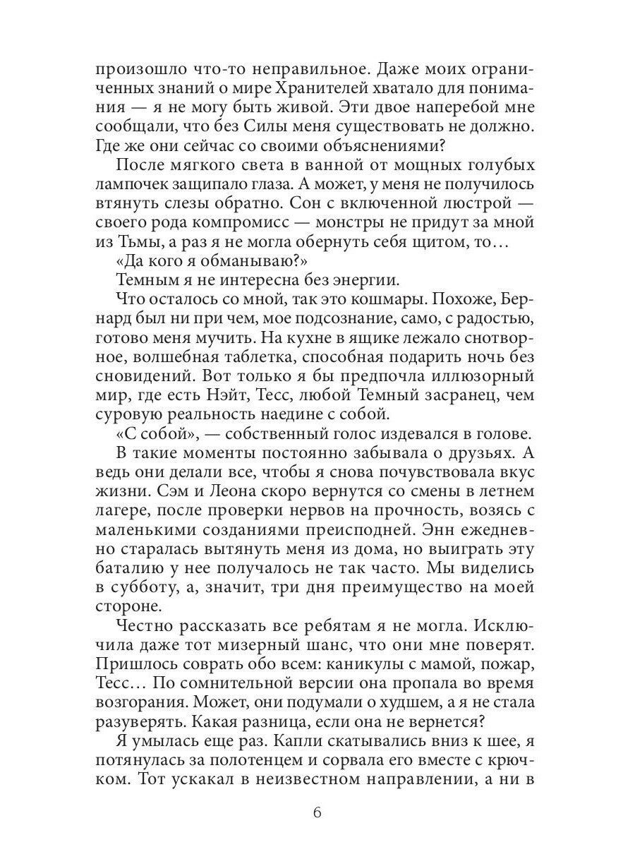 Тьма уже смакует Силу и не собирается отпускать. Ловушки притягивают, обещая трепет, исступление… боль. Софи бежит за чувствами в новый мир, но не замечает, как он медленно отбирает все, что было ей дорого. Ночь сжигает последний луч солнца. Ставки растут. Смерть распахивает свои объятия. Довериться Темным Хранителям - сохранить себе жизнь, пойти за Светлыми - помочь близким. Софи готова на все ради спасения, только кого она выберет?| Издательство | Т8 RUGRAM |