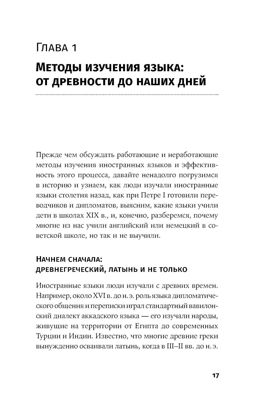 Решив изучать иностранный язык, мы задумываемся над тем, как, затратив минимальные усилия, получить максимальный результат. И зачастую сомневаемся в том, возможно ли это. Прочитав эту книгу, вы убедитесь в том, что освоить иностранный язык может абсолютно любой человек, и это научно доказанный факт, а значит, никаких преград на этом пути не существует. Книга адресована всем, кто хочет овладеть иностранным языком, но не решается или не может найти время и силы на занятия; начинает изучать язык, но бросает дело на полпути - из-за нехватки времени, мотивации, терпения; считает, что у него нет способностей и таланта к изучению языков; потратил на учебу много лет, но так и не смог заговорить; изучает языки довольно успешно, но хотел бы повысить эффективность занятий.| Издательство | Альпина нон-фикшн |