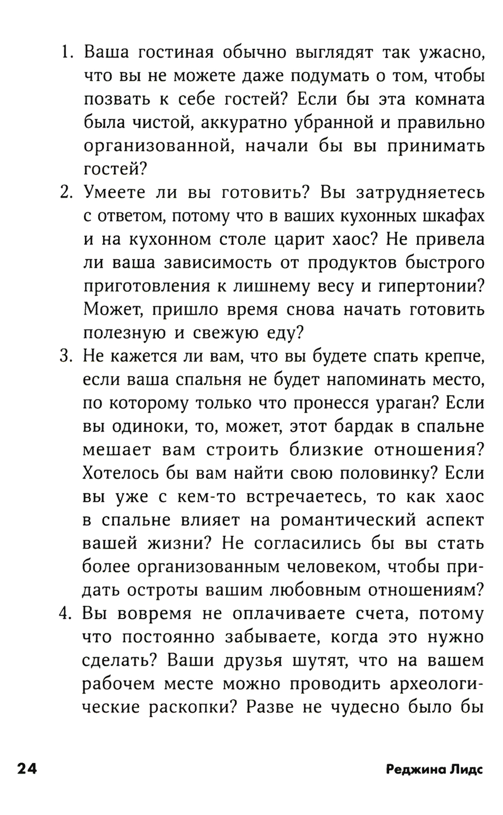 Вы хотите навести в доме порядок, но чувствуете, что не хватает времени? Хаос выкачивает из вас жизненную энергию? Вы точно знаете, что чувствовал Сизиф, пытавшийся вкатить камень на гору. Не отчаивайтесь. Реджина Лидс, организатор и опытнейший консультант по созданию комфортного жизненного пространства, поможет вам. Следуйте советам, представленным в книге, и, тратя всего 8 минут в день, вы превратите свое жилище в дом вашей мечты. Используя книгу как непосредственное руководство к действию, вы сможете шаг за шагом, с радостью и вдохновением, изменить пространство вокруг себя так, чтобы оно воодушевляло вас, дарило гармонию и заряжало энергией. Книга предназначена для широкого круга читателей.| Издательство | Альпина Паблишер |