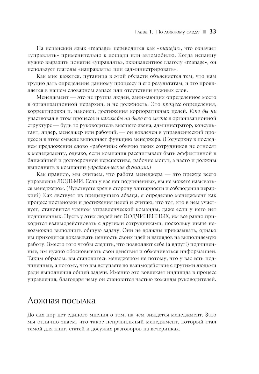 Книга известнейшего в мире специалиста по повышению эффективности организаций посвящена избитому, но в то же время вечно актуальному вопросу - как стать идеальным менеджером. Автор уверяет: идеальным быть попросту невозможно, но можно отшлифовать грани своей личной эффективности и быть эффективным в одной, максимум - в двух областях. Вы узнаете: - Как найти правильную мотивацию для подчиненных? - Какие условия нужны работнику, чтобы он научился ответственности? - Почему удовлетворение клиентов - это первостепенная задача каждого руководителя? - Как же подобрать взаимодополняющую команду? - Как верно извлекать выгоду из споров, которые неизбежны?| Издательство | Альпина Паблишер |