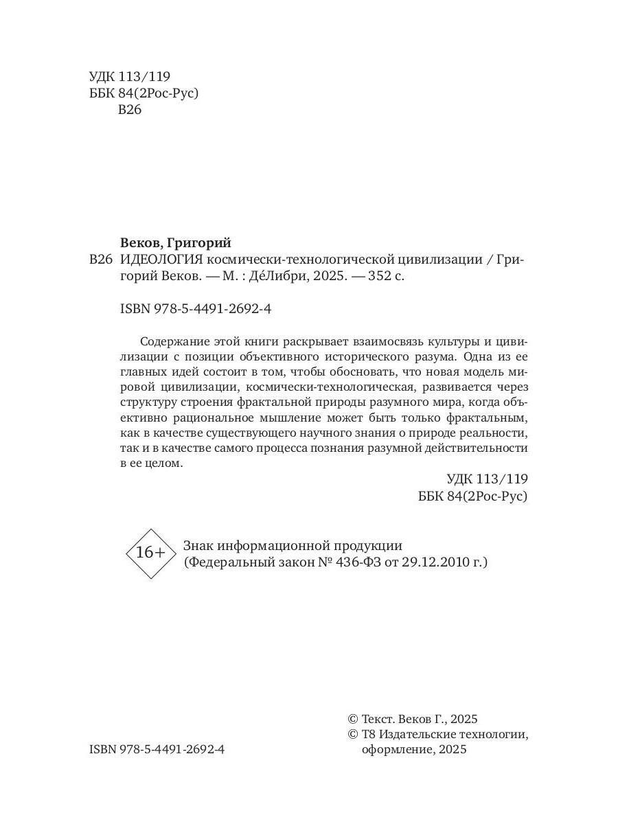 Аннотация: ИДЕОЛОГИЯ космически-технологической цивилизации