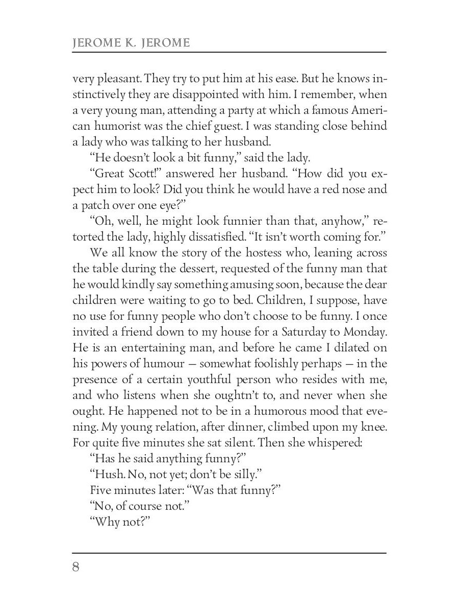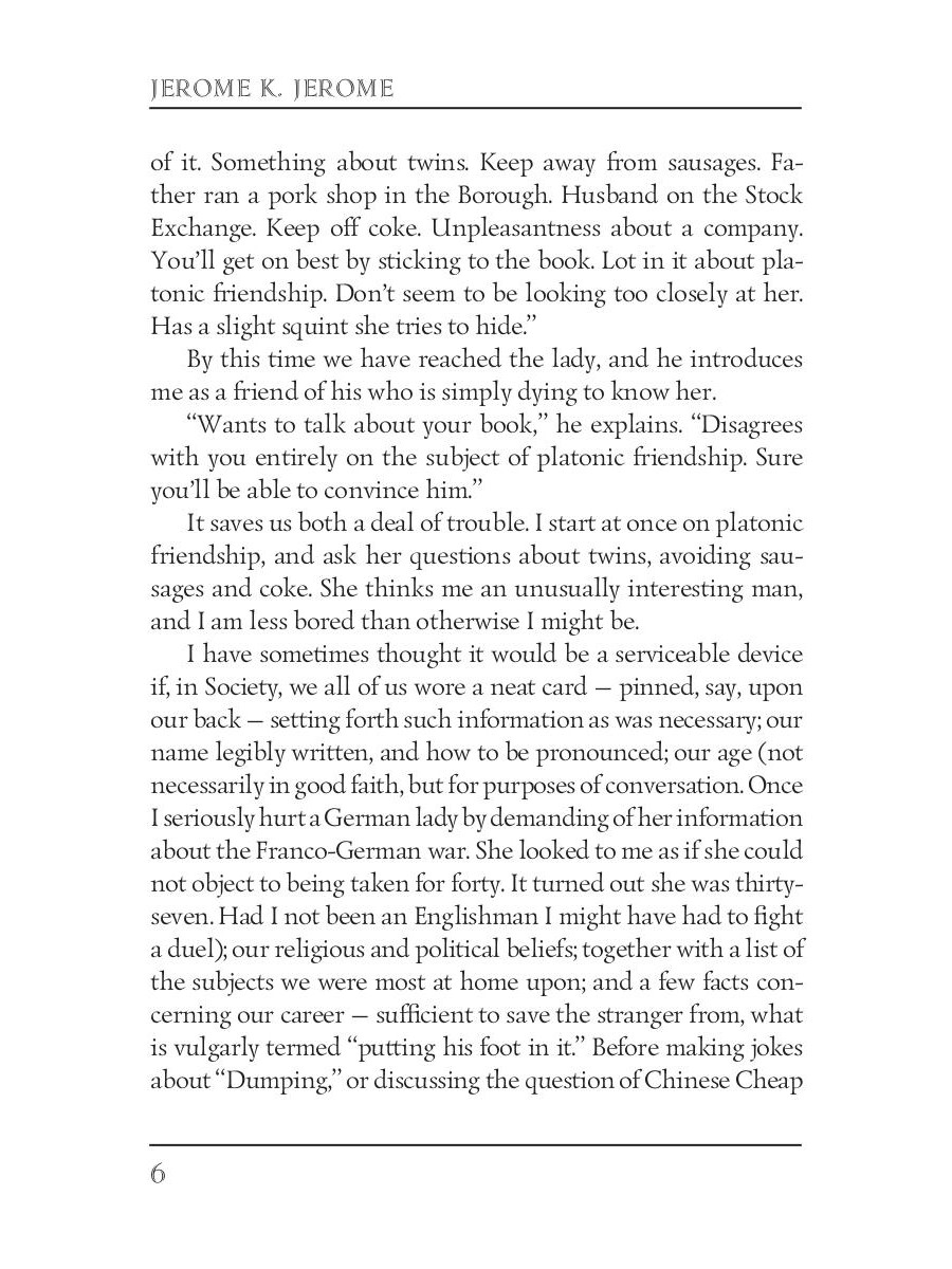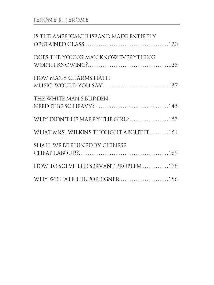 Jerome Klapka Jerome (1859 -1927) was an English writer and humourist. This volume answers on such questions like «Are we as interesting as we think we are?», «Should women be beautiful?», «When is the best time to be merry?», «Should married men play golf?» and other funny.