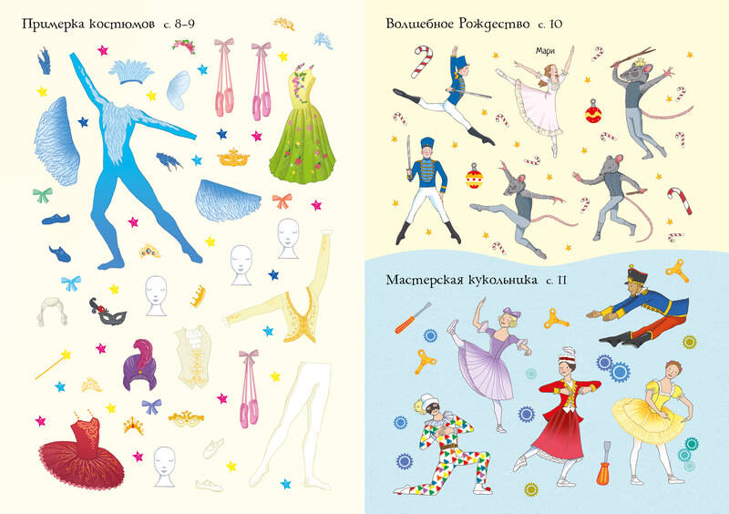 Начинается представление! Танцоры и танцовщицы в изящных костюмах выполняют сложнейшие па. Солистка выступает в образе Золушки, но уже завтра превратится в Жар-птицу или Чёрного лебедя. Помоги артистам подготовиться к следующей постановке! Создай сказочные декорации, выбери самые роскошные наряды и найди подходящий реквизит. Читаем и играем! Развиваем внимание, воображение, мелкую моторику и художественный вкус.