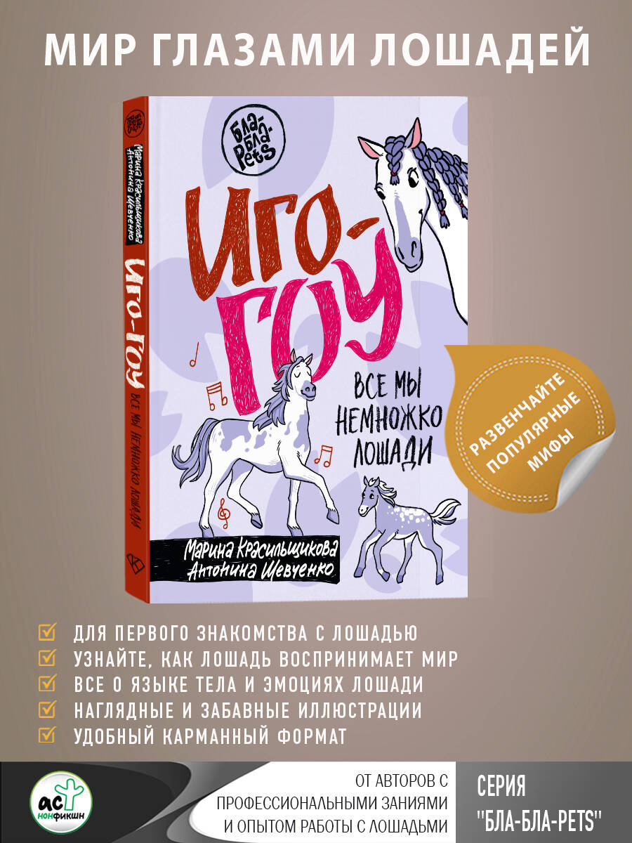 Как лошади воспринимают окружающий мир, что слышат, видят и чувствуют? Какие эмоции они испытывают и как выражают их? И как определить, что хочет сказать лошадь, по её поведению? Эта книга поможет с уверенностью оседлать удивительный конный мир и сделать первые шаги к пониманию лошадиной души. Вы получите множество советов о правильном уходе за лошадью, разберетесь в видах амуниции и вариантах занятий с лошадьми. Узнаете о лошадях много интересных фактов и мифов - развенчаете заблуждение о "лошадином" здоровье и раскроете, почему же лошади ходят на цыпочках! Авторы книги много лет занимаются профессиональным обучением лошадей, их владельцев и тех, кто только начинает познавать конный мир - вы будете в надёжных руках.| Издательство | Издательство "АСТ" |