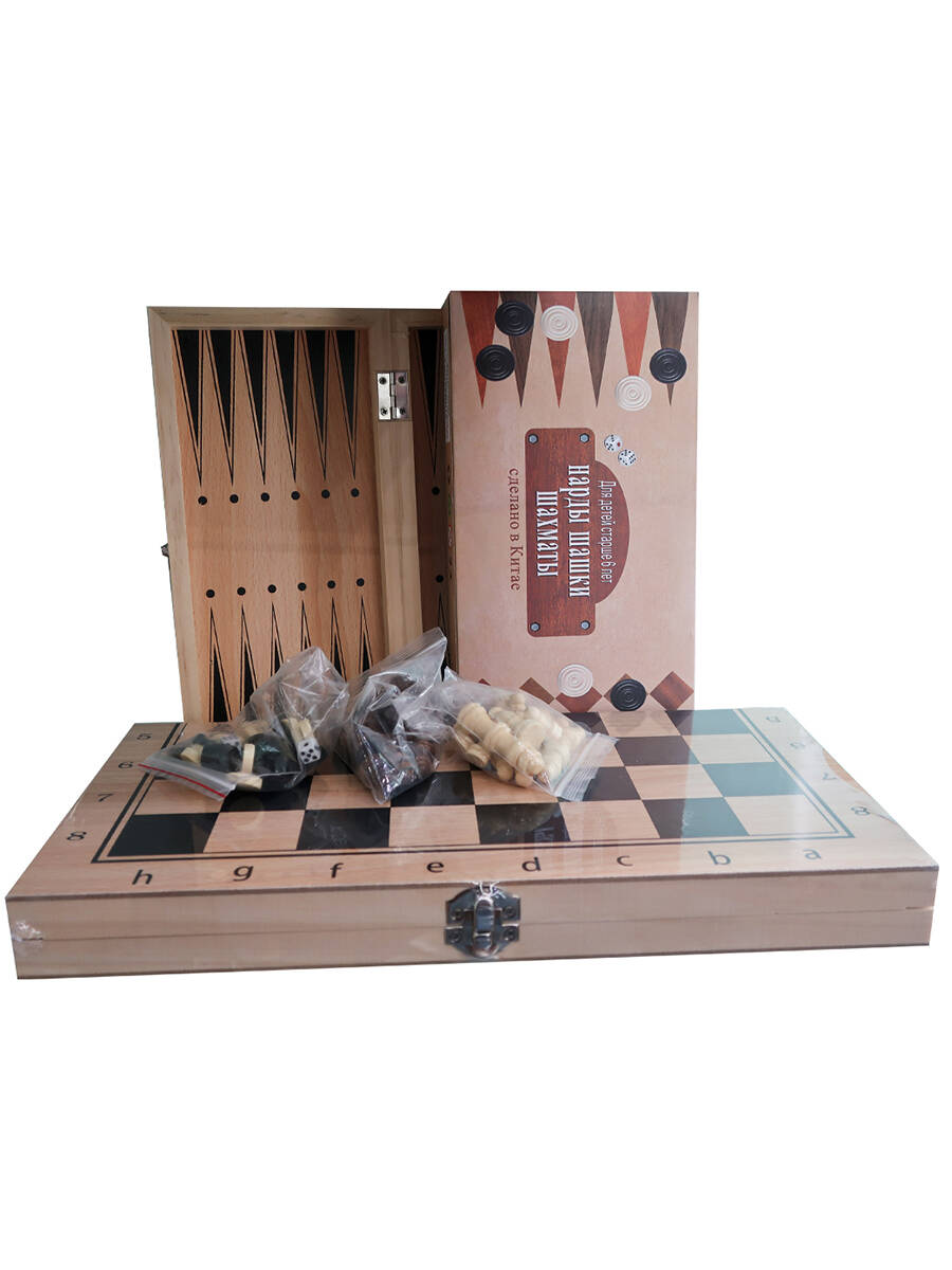 Набор настольных игр поможет приятно провести время и потренировать мозг. Нарды, шахматы и шашки благоприятно сказываются на развитии детей и взрослых. А секрет популярности этих настольных игр заключается в гениальной простоте их правил и огромных возможностях комбинаций. Проводите досуг с пользой! Размеры фигур: король 6,4x2 см, пешка 3x1,6 см.
