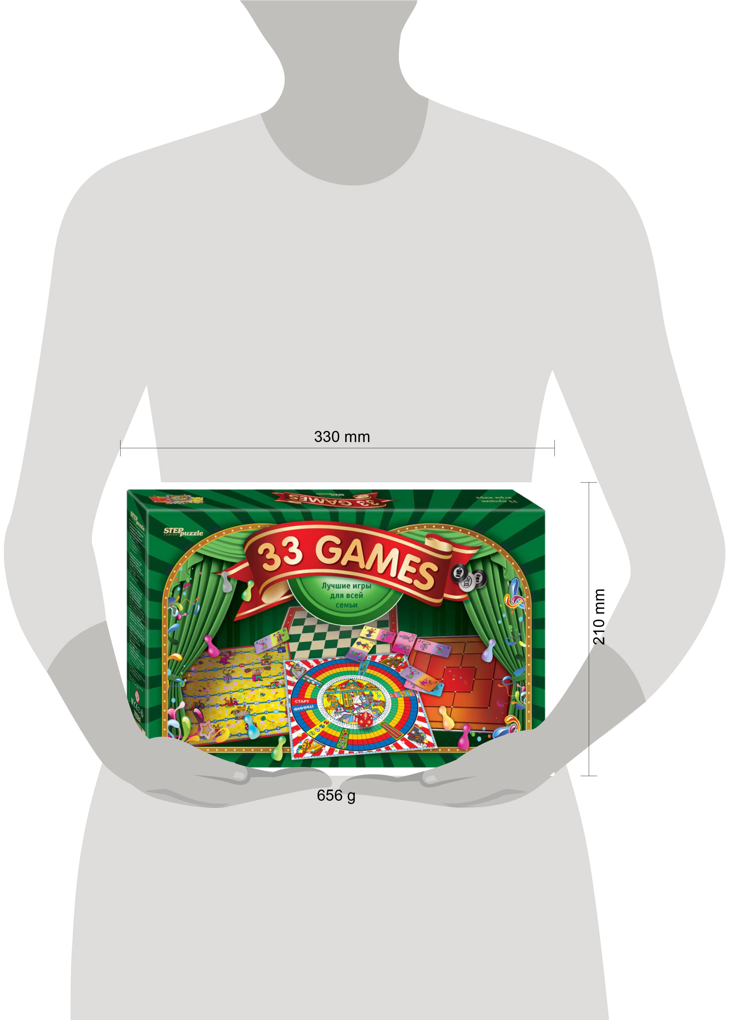 "33 лучшие игры мира" - набор для всей семьи. В одной коробке тут собраны самые разные настольные игры. В комплекте разнообразные вариации шахмат, шашки, домино, а также скачки и парад-алле. Играть в них будет интересно не только детям, но и взрослым - гарантируем не один увлекательный семейный вечер! А ещё этот комплект идеально подойдет в качестве подарка любителям настольных игр. Что в наборе? - игровые поля (двусторонние) - 2 шт.; - фишки деревянные - 32 шт.; - кубики - 1 шт.; - фишки четырёх цветов - 4 шт.; - карточки домино - 28 шт.; - правила - 1 шт. Описание игр. - 1. Шахматы - 9 видов разнообразных игр. - 2. Шашки - 12 видов разнообразных игр. - 3. Мельница - 4 вида разнообразных игр. - 5. Скачки. - 6. Парад-Алле. - 7. Домино - 6 видов разнообразных игр. Возраст игроков. Для детей от 3-х лет. Количество игроков. От 1 до 5 игроков. Материалы. Пластик, картон. Инструкция к игре (PDF)| Издательство | Степ Пазл ЗАО |