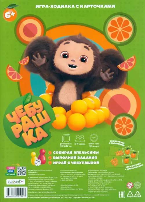 Урра, Чебурра...шка! Игра-ходилка - теперь с любимым героем! Бросай кубик, собирай и отдавай апельсинки, называй слова на буквы Ч, Е, Б, У, Р, А, Ш, К, А - и принеси в своей корзинке больше всего апельсинов. Игра развивает мелкую моторику, скорость реакции, учит быть внимательным, идти к цели и побеждать.