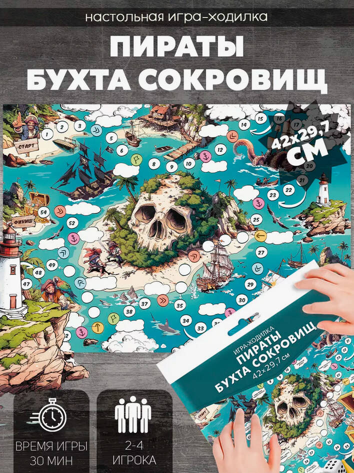 Аннотация: Игра-ходилка с фишками. Пираты. Бухта сокровищ. 29,7х42 см. ГЕОДОМ