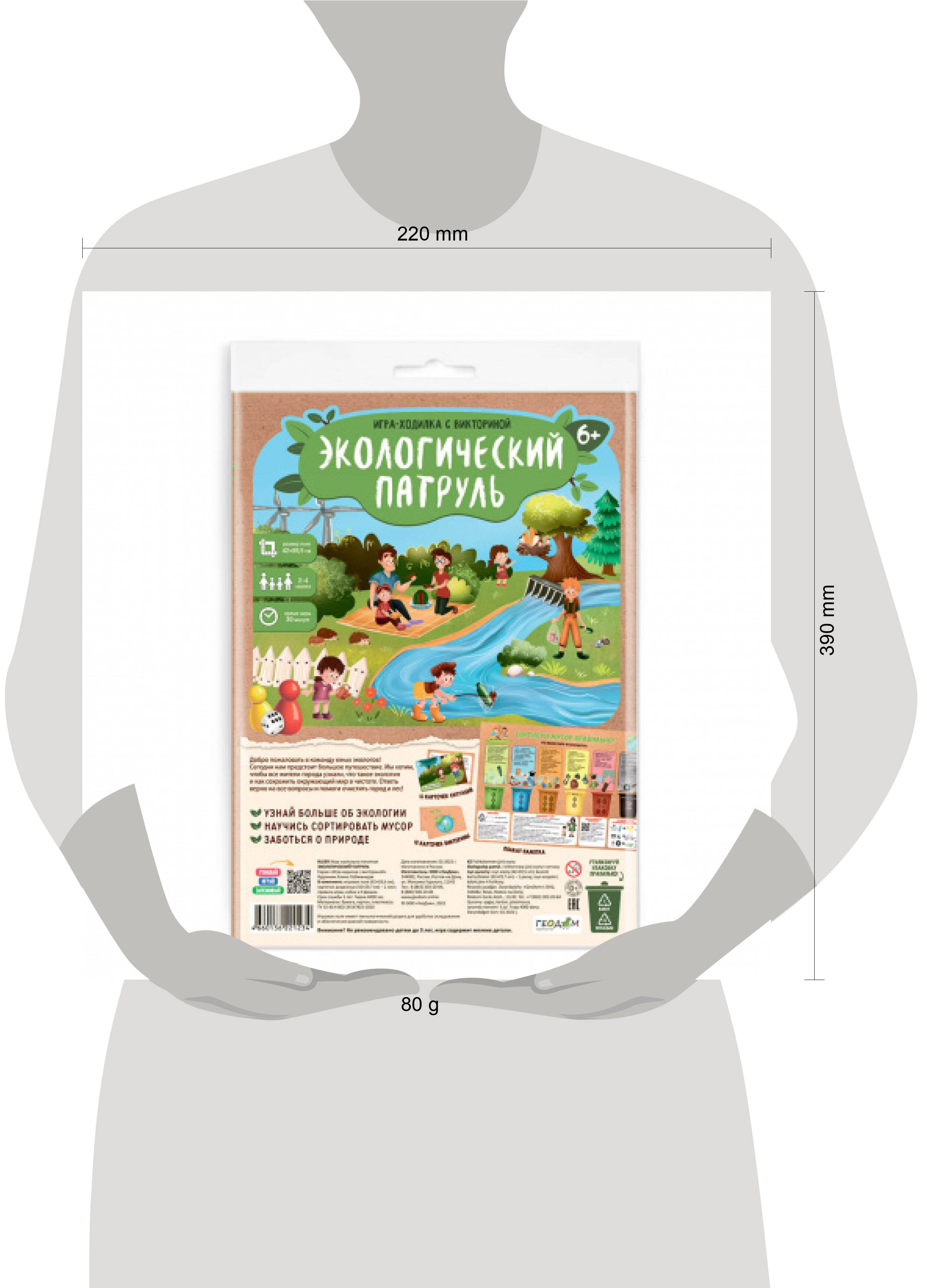С игрой-ходилкой "Экологический патруль" ребёнок узнает, как и почему надо помогать природе - выключать свет, закрывать воду и сортировать мусор. Юному экологу предстоит исправить ситуации на поле - очистить город и лес и ответить на вопросы викторины. В игровой форме он освоит основные правила, которые помогут сохранить окружающий мир в чистоте. Игра станет отличным помощником в изучении экологии и сформирует у ребёнка интерес к окружающей среде и её проблемам. А плакат-памятка "Сортируй мусор правильно!" со значками утилизации будет полезен для всей семьи! Рекомендованный возраст: 6+. Количество игроков: 2-4.| Издательство | ГеоДом ООО |