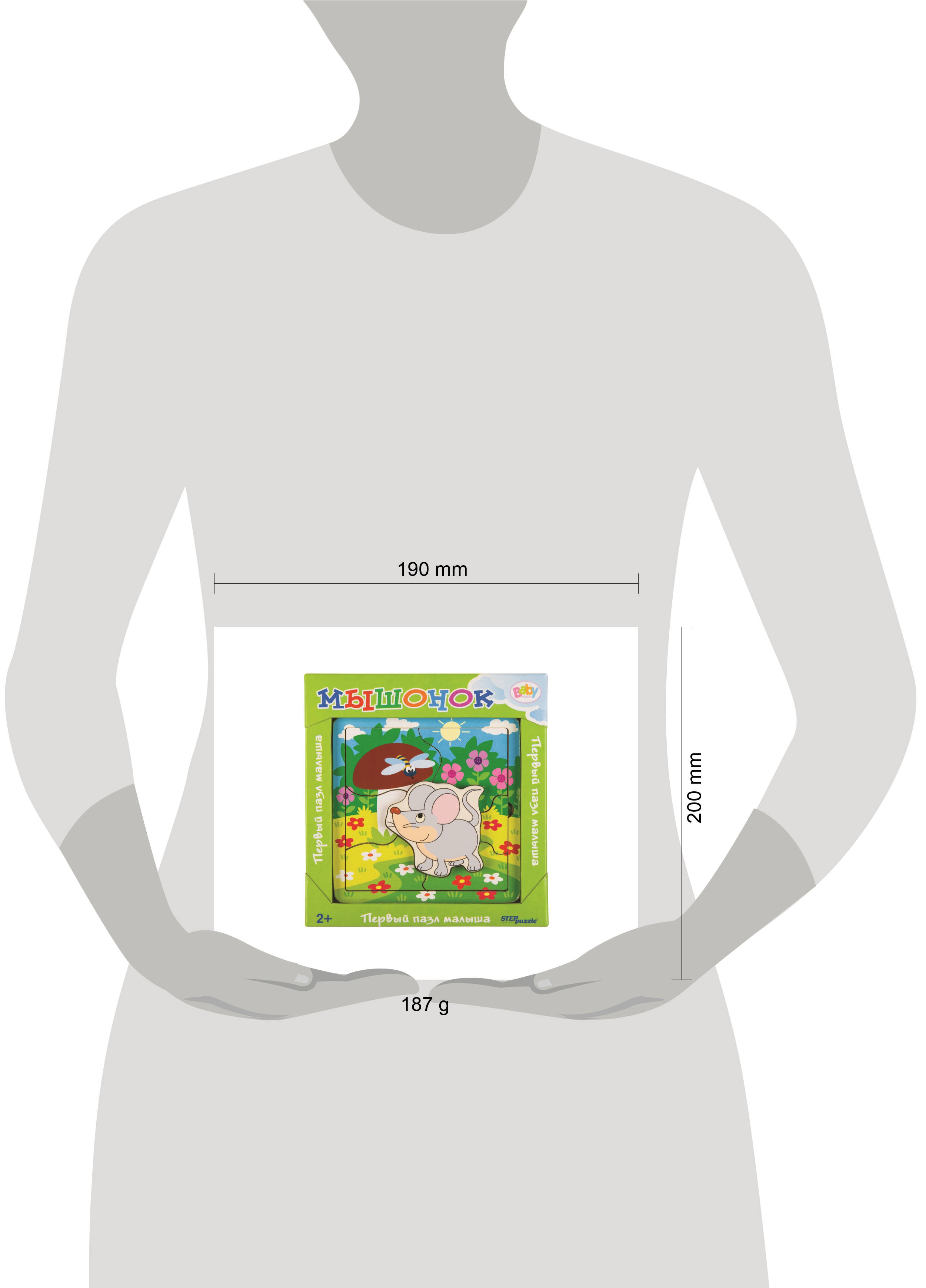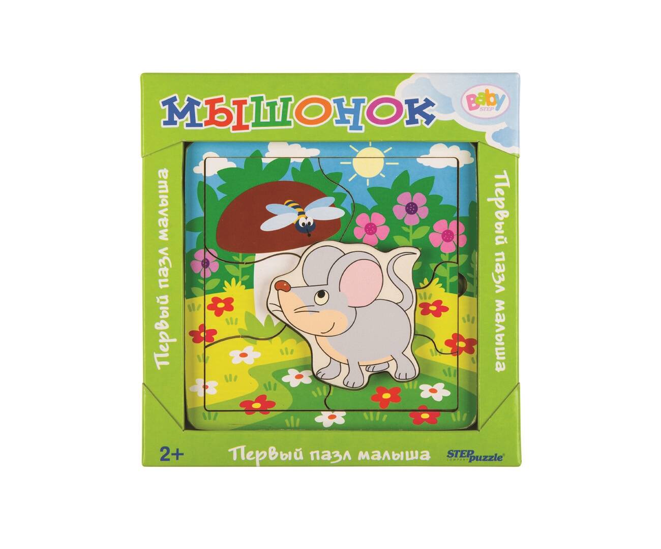 Игра из дерева "Мышонок" - развивающий деревянный пазл, который был разработан для занятий с детьми от 2 лет. В состав игры входит объемная деревянная фигурка мышки. Её можно вложить в пазл, а также играть отдельно. На картинке изображено много деталей, которые ребенок сможет рассматривать и называть. Родители же помогут ему наводящими вопросами - например, какого цвета шляпка у грибочка на картинке? Что полезного в игре? - развивает мелкую моторику; - выполнена из экологически чистого материала; - содержит опорную картинку для сборки на обратной стороне коробки; - разные детали пазла (4-7 см) дадут познание о размерах предметов и их форме; - способствует развитию интеллекта, тренирует усидчивость и терпение. Состав игры: - рамка-основа - 1 шт. - фигурка из дерева - 1 шт. - детали пазла - 6 шт. Игра подходит для детей от 2 лет. Познакомьте ребенка с окружающим миром при помощи игры из дерева "Мышонок"! В этой серии также представлены: - Игра из дерева "Улитка" - Игра из дерева "Енотик" - Игра из дерева "Цыпленок" - Игра из дерева "Ёжик" - Игра из дерева "Зайчонок"| Издательство | Степ Пазл ЗАО |