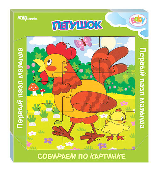 Игра из дерева "Петушок" - развивающий деревянный пазл, который был разработан для занятий с детьми от 2 лет. Пазл состоит из 9 деталей. Яркая детская картинка содержит много дополнительных деталей, малышу точно понравится её рассматривать и собирать. Что полезного в игре? - развивает мелкую моторику; - выполнена из экологически чистого материала; - содержит опорную картинку для сборки; - крупные детали пазла (4-5 см) эргономичны для детской руки; - способствует развитию интеллекта и тренирует усидчивость. Состав игры: - рамка-основа - 1 шт. - детали пазла - 9 шт. Игра подходит для детей от 2 лет. Проведите волшебный семейный вечер с ребёнком за игрой из дерева "Петушок". В этой серии также представлены: - Игра из дерева "Коровка" - Игра из дерева "Котик" - Игра из дерева "Львёнок" - Игра из дерева "Лягушка" - Игра из дерева "Рыбка" - Игра из дерева "Слонёнок" - Игра из дерева "Тигрёнок" - Игра из дерева "Утёнок" - Игра из дерева "Хрюшка" - Игра из дерева "Черепашка" - Игра из дерева "Жираф"| Издательство | Степ Пазл ЗАО |