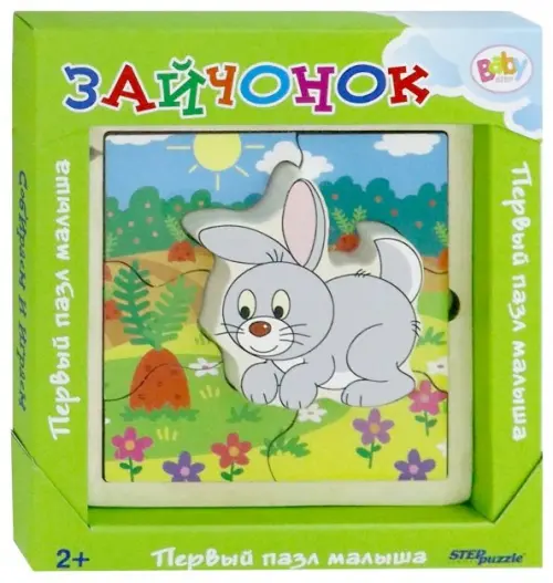 В состав игры входит объемная деревянная фигурка зайчонка. Её можно вложить в пазл, а также играть отдельно. На картинке изображено много деталей, которые ребенок сможет рассматривать и называть. Родители же помогут ему наводящими вопросами - например, сколько морковок ты видишь на картинке?