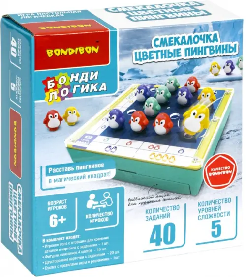 Улыбаемся и машем! Ведь с нами логическая детская игра "Смекалочка. Цветные пингвины" от Bondibon.