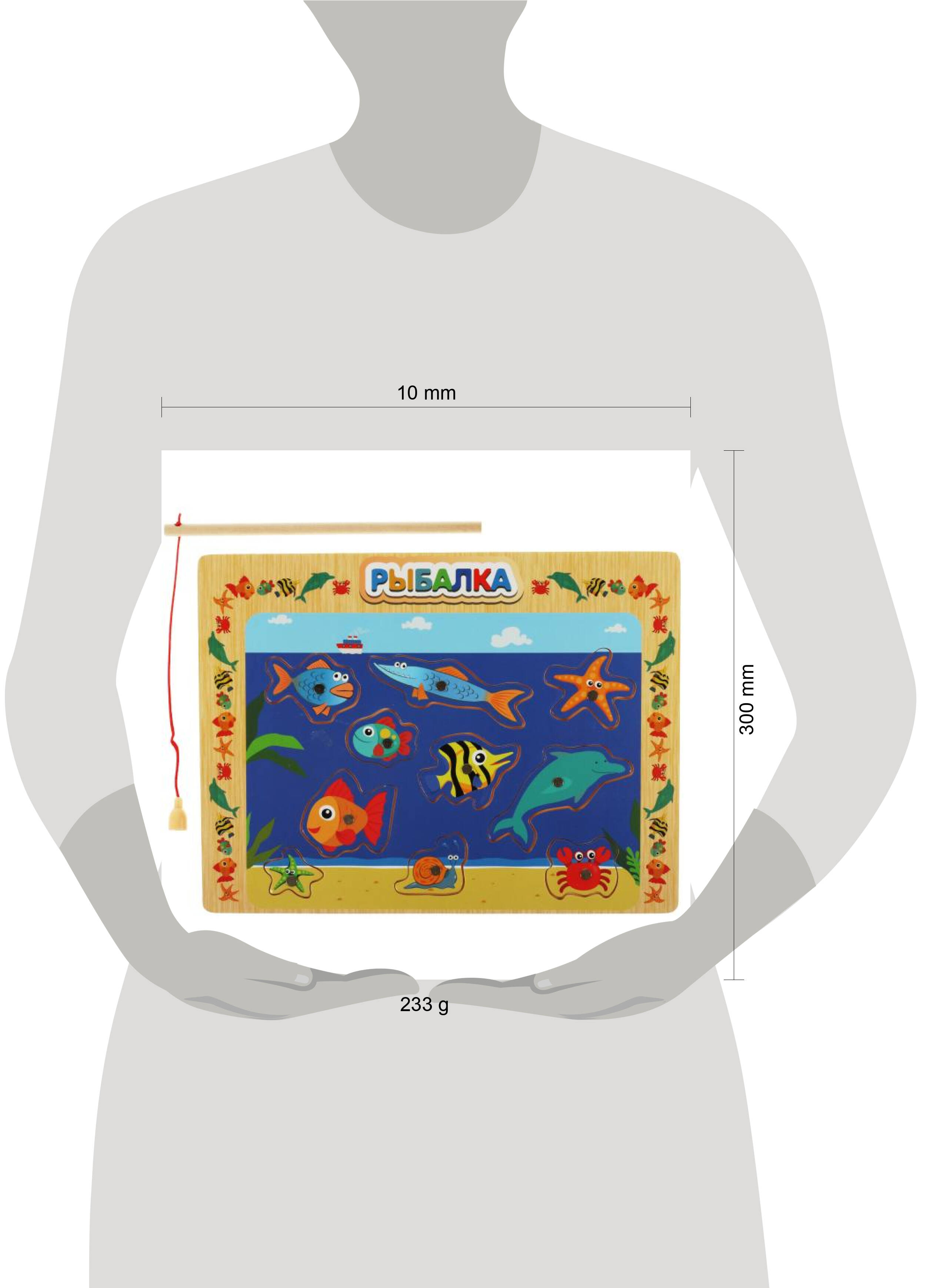 Деревянная игрушка-вкладыш "Синий Трактор. Рыбалка" ТМ "Буратино" - отличная развивающая игра для маленьких любознаек: - красочная игровая основа - 10 деревянных деталей - оригинальный дизайн - экологичный материал: натуральное дерево Малышу необходимо с помощью удочки достать "улов" с игровой основы. Вкладыши с металлическими деталями цепляются к удочке при помощи магнита. После того, как все "рыбки" выловлены, их можно вернуть на игровую основу, сопоставляя по форме вкладыши и углубления для них. Яркая игра непременно увлечёт ребёнка, поможет ему увлекательно и с пользой провести время. Игра с магнитной рыбалкой ТМ "Буратино" будет способствовать развитию у детей: - мелкой моторики - логического мышления - координацию движений - внимания Размер основы: 30 х 22,5 см. Материал: дерево + бумага + полимеры. Рекомендовано детям от 3-х лет.