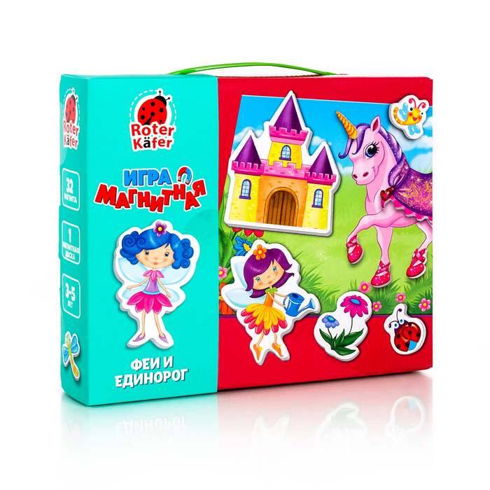 У добрых лесных фей всегда много забот! Рано утром они будят солнышко своим пением. Днём ухаживают за цветами в саду. А вечером создают волшебные сны. А еще с ними живет единорог-волшебник, который во всем им помогает! Хотите окунуться в прекрасную сказку и познакомиться ближе с нашими героями? Игровой набор "Феи и единорог" содержит магнитную доску, с изображенным на ней сюжетом, и 32 тематических магнита. Прикрепляя их к доске, ребенок создаст свою неповторимую историю. Придумывайте новые события и делитесь ими друг с другом! Все магниты объемные, их удобно крепить и снимать. В процессе игры ребёнок потренирует воображение, фантазию, логическое мышление, речь и мелкую моторику. Создавайте сказку своими руками!| Издательство | Я РАСТУ ТОЙЗ ООО |