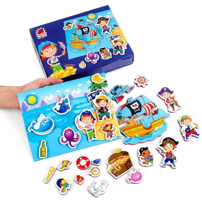 Йо-хо-хо! Веселые и отважные пираты отправляют на поиски сокровищ! Вступайте в их ряды! Вас ждут бескрайний океан, веселье и незабываемые приключения! Расставляйте объёмные магниты на специальной доске, придумывайте собственный сюжет и создавайте яркие и оригинальные образы! Игра развивает творческие способности ребенка, воображение, логическое мышление и мелкую моторику.| Издательство | Я РАСТУ ТОЙЗ ООО |