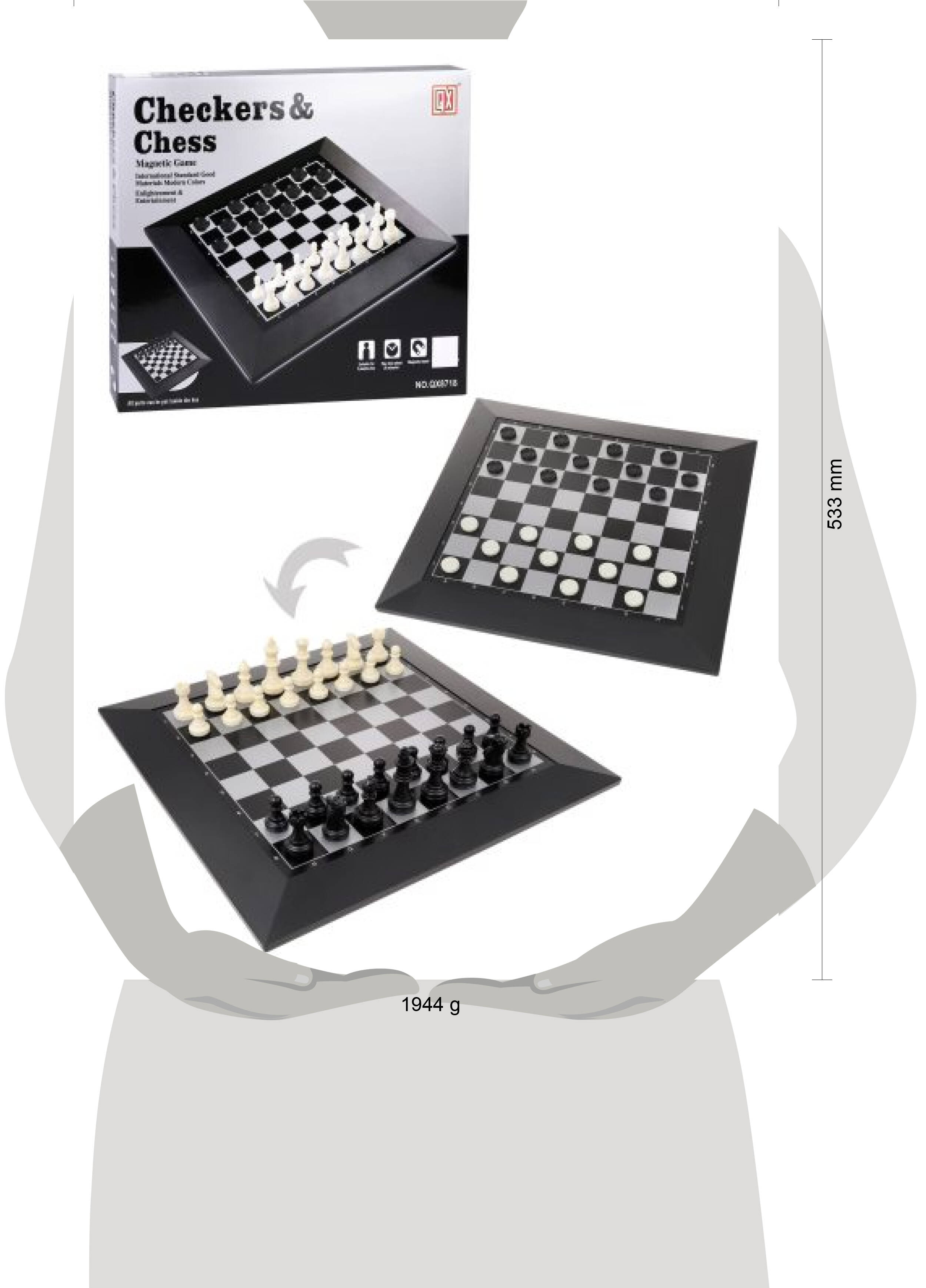 Аннотация: Игра настольная 2в1, в компл. игр. поле 39х39см., шахматы, шашки, кор.