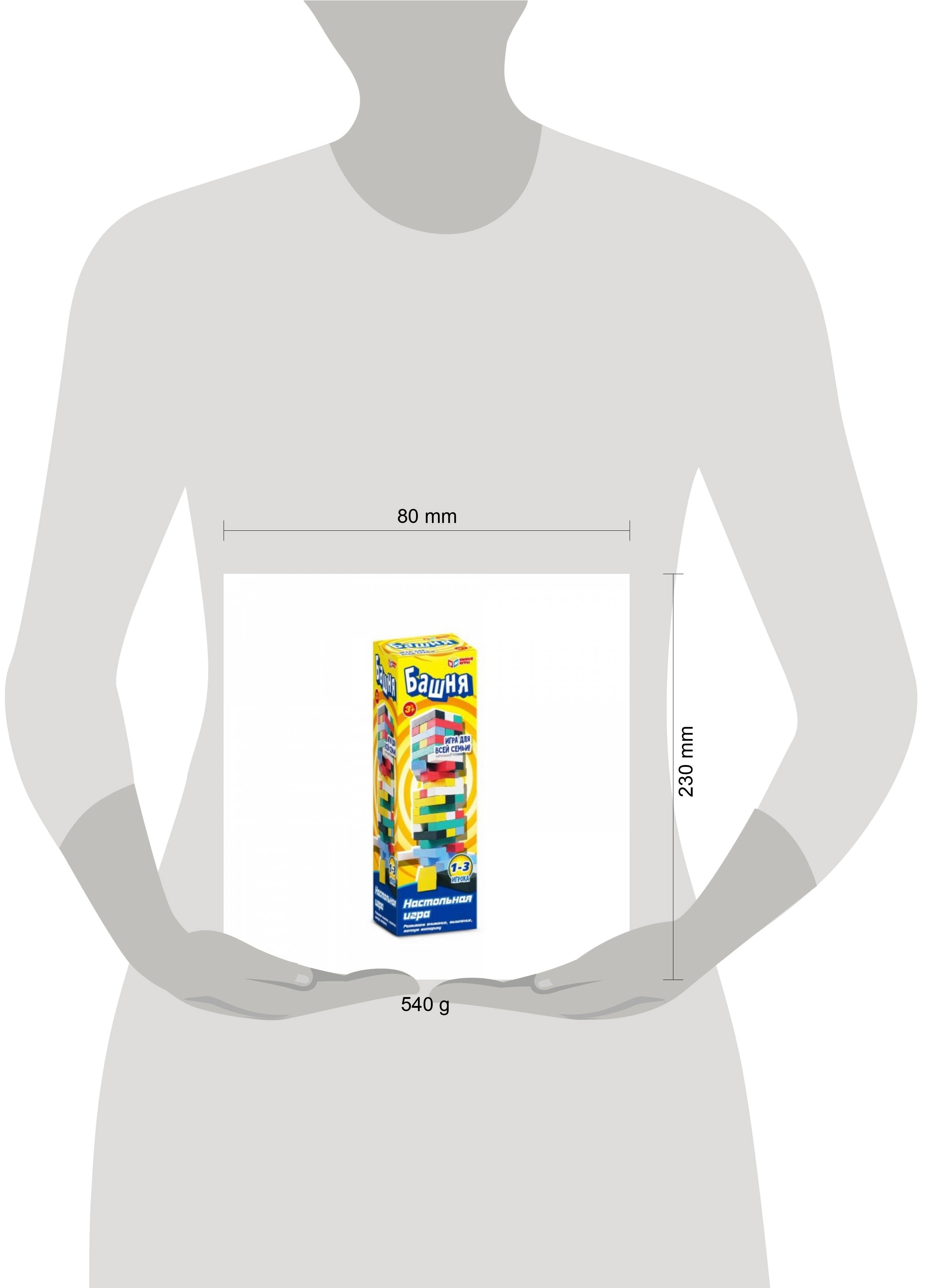 Игра "Башня" ТМ "Умные игры" - интересное времяпровождение для детей и взрослых: - 54 разноцветных бруска - игральный кубик - продолжительность игры: от 20 минут - количество игроков: 1-3 - экологичный материал ПОДГОТОВКА К ИГРЕ Нужно собрать башню так, чтобы в каждом ряду находились дощечки разного цвета. ХОД ИГРЫ Игрок бросает кубик и вытягивает дощечку того цвета, который выпал на кубике, из любого ряда и устанавливает её на верхний уровень. ЗАДАЧА Собрать башню как можно выше. Проигрывает тот, кто позволит башне упасть. Соответственно, выигрывают остальные игроки. Игра-башня ТМ "Умные игры" будет способствовать развитию: - координации движений - логического мышления - моторики - внимания Размер упаковки: 23 х 8 х 8 см. Материал: дерево. Рекомендовано детям от 3-х лет.