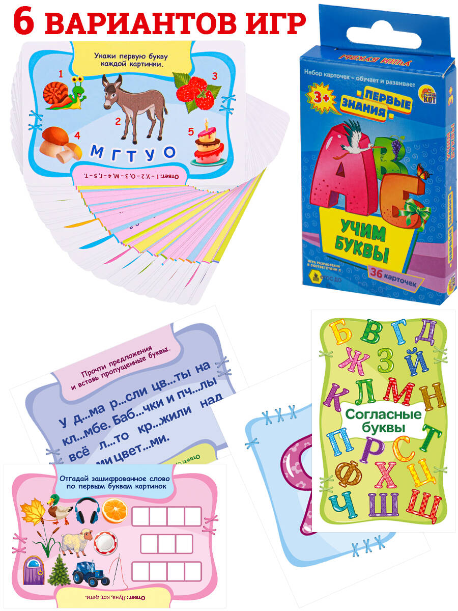 Перед Вами развивающая игра "Первые знания. Учим буквы" с особенным комплексом занятий, которая поможет детям получить знания и первичные представления об окружающем мире. Игра направлена на познавательное развитие личности ребенка. В ней дети не только узнают новое, но и учатся общаться. Эта увлекательная настольная игра познакомит детей с буквами и к тому же позволит крохам проявить целеустремлённость, чтобы стать в результате победителем. Но главная польза от развлечения - это расширение кругозора ребенка новыми знаниями.