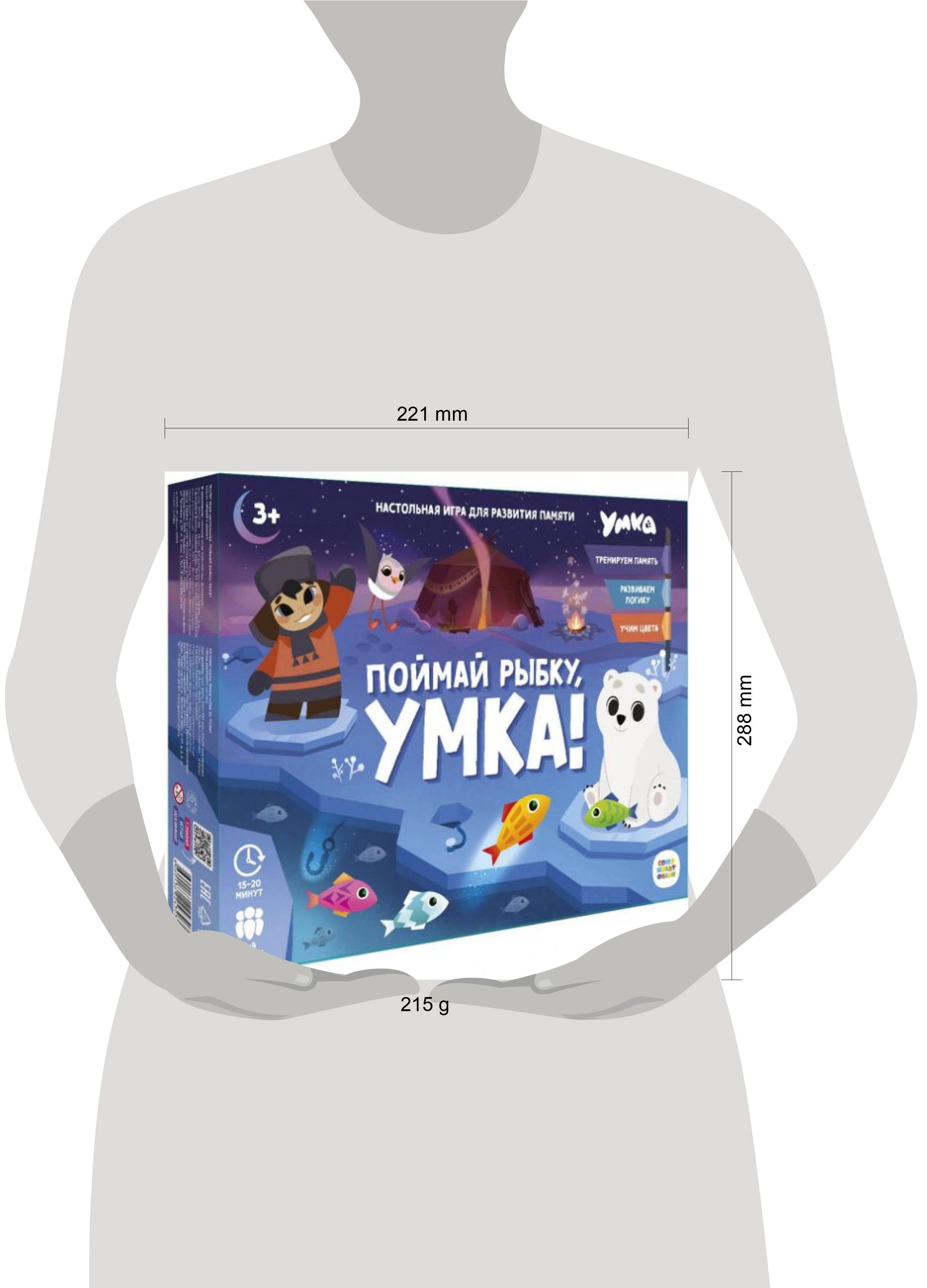 "Поймай рыбку, Умка" - это настольная игра для развития памяти со знакомой механикой мемори и любимыми персонажами! Сможешь отыскать всех рыбок, которые спрятались подо льдом? Скорее отправляйся на рыбалку вместе с Умкой и его друзьями! Играйте всей семьёй и тренируйте память, внимание и мелкую моторику малыша. Прыгайте по льдинкам, ловите рыбок, запоминайте цвета и веселитесь вместе с героями любимого мультфильма! Рекомендованный возраст: 3+.| Издательство | ГеоДом ООО |