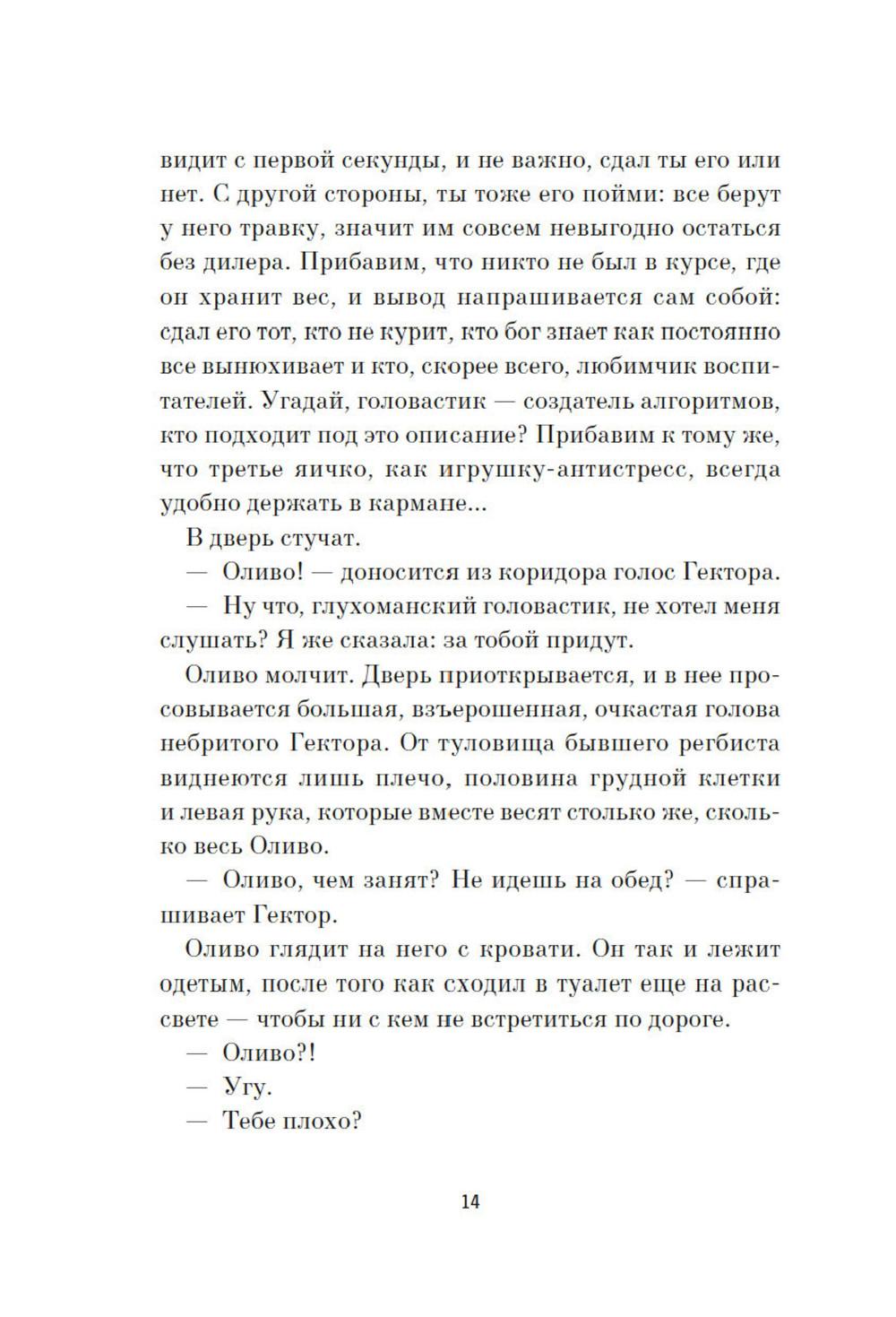 СОДЕРЖИТ ИНФОРМАЦИЮ О НАРКОТИЧЕСКИХ ИЛИ ПСИХОТРОПНЫХ ВЕЩЕСТВАХ, УПОТРЕБЛЕНИЕ КОТОРЫХ ОПАСНО ДЛЯ ЗДОРОВЬЯ. ИХ НЕЗАКОННЫЙ ОБОРОТ ВЛЕЧЕТ УГОЛОВНУЮ ОТВЕТСТВЕННОСТЬ. Шестнадцатилетний Оливо Деперо живет в приюте для трудных подростков и поменял уже несколько домов с тех пор, как лишился родителей в ужасной аварии. Он любит книги, ненавидит грамматические ошибки, всегда носит определенную одежду и произносит максимум шестьсот слов в день - вполне достаточно для общения с миром! А еще Оливо обладает незаурядным интеллектом и пользуется им, чтобы запоминать информацию за секунду, строить логические цепочки и делать единственно верные выводы, а самое главное - видеть то, чего никто другой не видит. И именно поэтому отчаявшийся комиссар полиции Соня Спирлари считает, что Оливо - ее последний шанс найти четырех пропавших без вести подростков. Выполнив все требования юноши, коих оказалось немало (например, он ест только макароны с пармезаном, спит в комнате без отопления, сгрызает по пять чупа-чупсов в день), Спирлари вводит его в курс дела. И Оливо сразу подмечает, что есть в нем что-то странное. Странное настолько, что даже ему придется попыхтеть над разгадкой. И это как раз то, что Оливо нравится.| Издательство | Азбука |