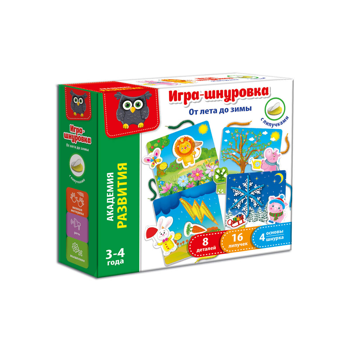 Аннотация: Игра-шнуровка с липучками "От лета до зимы"