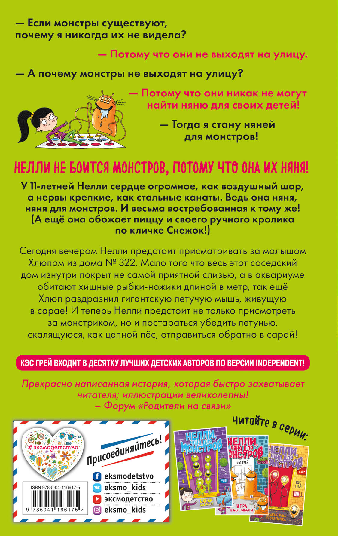 1. Если монстры существуют, почему я никогда их не видела? - Потому что они не выходят на улицу! 2. «Хорошо написанная история, которая быстро захватывает читателя; иллюстрации великолепны!» - Форум «Родители на связи». 3. Смешные и увлекательные истории о том, как девочка с огромным сердцем по имени Нелли стала няней для монстров. 4. Яркие обложки, очень много крупных иллюстраций, плотная бумага. 5. Идеально для первого чтения и для чтения всей семьёй!| Издательство | ООО "Издательство "Эксмо" |