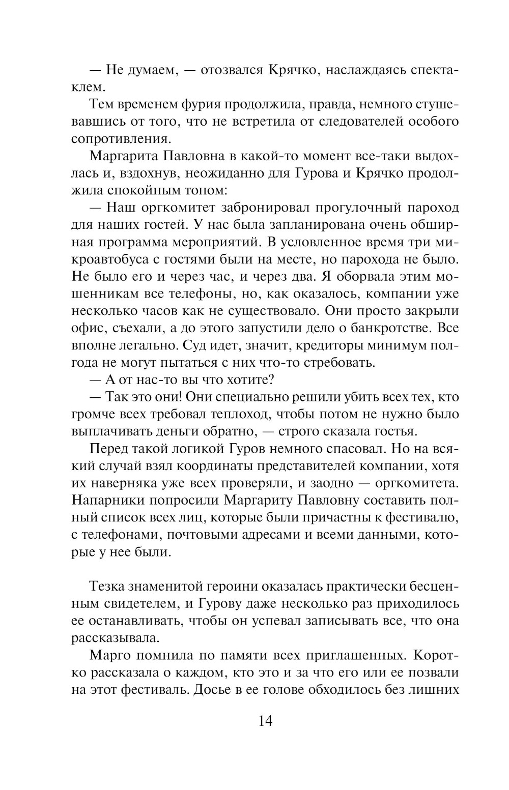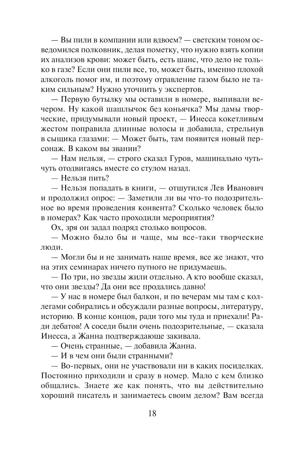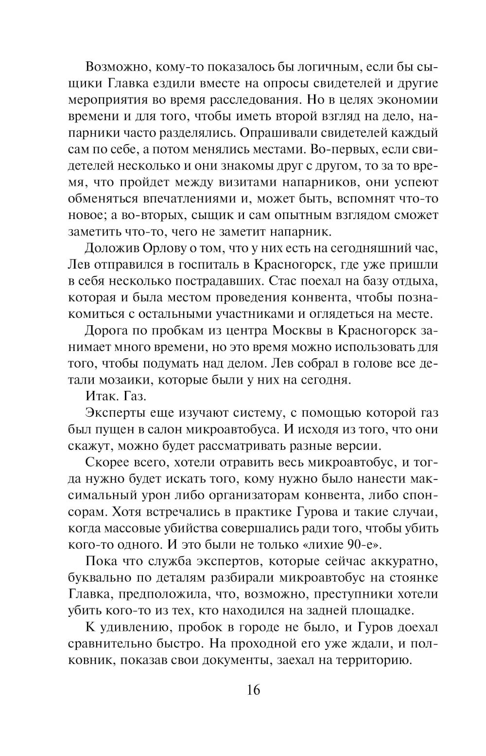 На стоянке около Истринского водохранилища находят микроавтобус. Его пассажиры обездвижены. Пятеро из них мертвы. Экспертиза установила, что причиной их гибели стало отравление газом, специально пущенным в салон. Полковники МВД Гуров и Крячко выясняют, что все жертвы - писатель, поэт, музыкант, художник и скульптор - были из группы, приехавшей на специально организованную творческую встречу. Причем один из погибших значился ее непосредственным организатором. Понимая, что случайностью это происшествие не назовешь, сыщики изучают биографию каждого из пострадавших. Вывод, который делают оперативники, ошеломляет следствие… Николай Леонов, в прошлом следователь МУРа, не понаслышке знал, как раскрываются самые запутанные уголовные дела. Поэтому каждая его книга - это правдивая захватывающая история с непредсказуемой интригой и неожиданным финалом. Главный герой этих книг, полковник Лев Гуров - сыщик высокого класса, к тому же с массой положительных человеческих качеств. Его уважают друзья, боятся враги и любят женщины. Он - настоящий отечественный супермен. Романы о Льве Гурове вот уже сорок лет неизменно привлекают поклонников отечественного детектива.| Издательство | Эксмо |