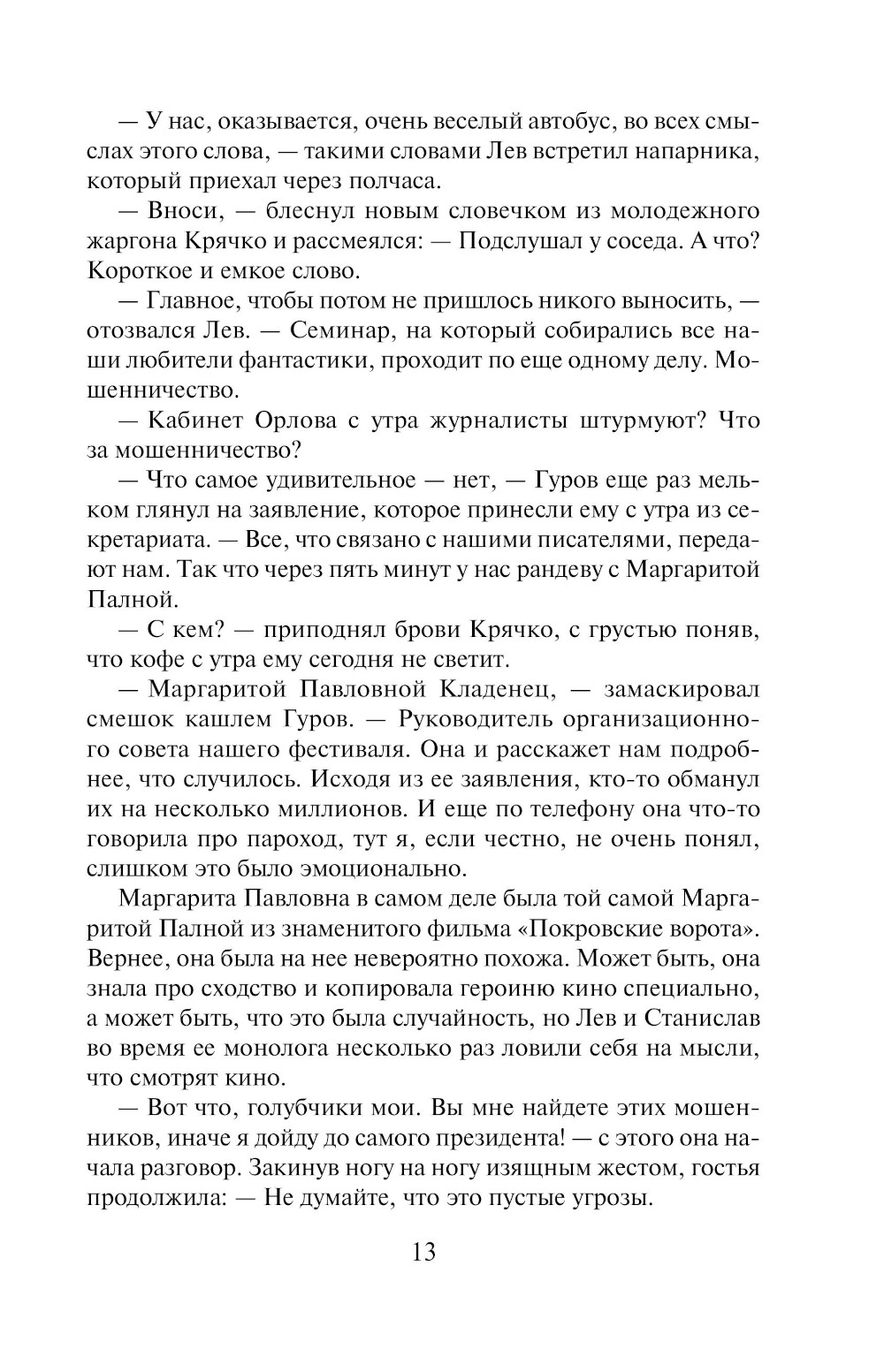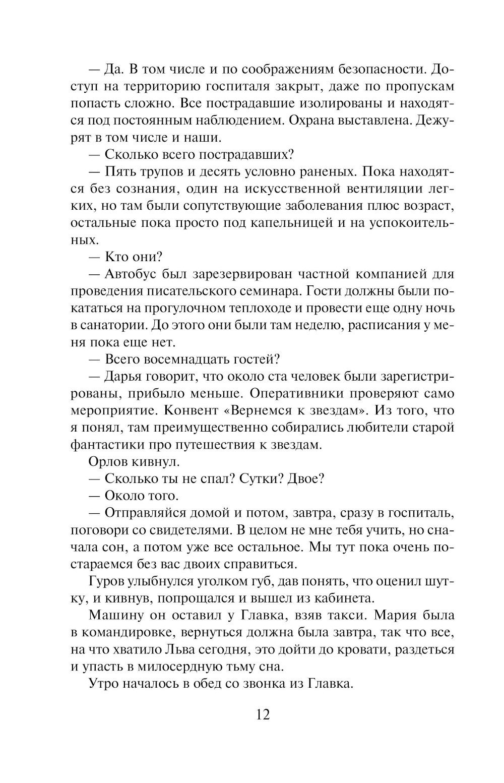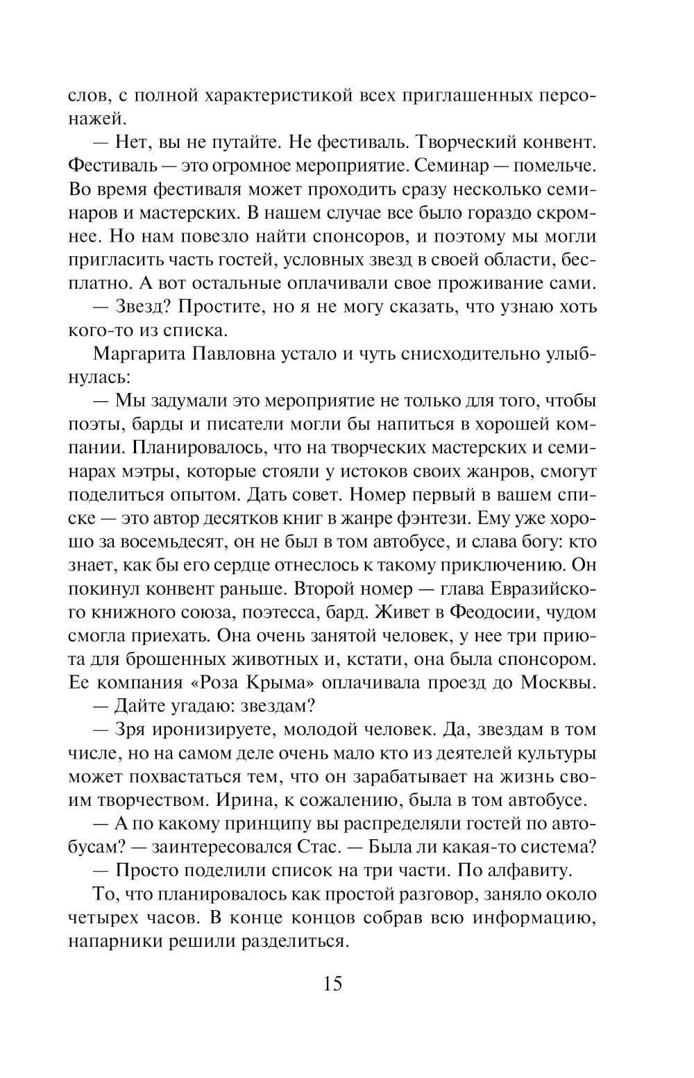 На стоянке около Истринского водохранилища находят микроавтобус. Его пассажиры обездвижены. Пятеро из них мертвы. Экспертиза установила, что причиной их гибели стало отравление газом, специально пущенным в салон. Полковники МВД Гуров и Крячко выясняют, что все жертвы - писатель, поэт, музыкант, художник и скульптор - были из группы, приехавшей на специально организованную творческую встречу. Причем один из погибших значился ее непосредственным организатором. Понимая, что случайностью это происшествие не назовешь, сыщики изучают биографию каждого из пострадавших. Вывод, который делают оперативники, ошеломляет следствие… Николай Леонов, в прошлом следователь МУРа, не понаслышке знал, как раскрываются самые запутанные уголовные дела. Поэтому каждая его книга - это правдивая захватывающая история с непредсказуемой интригой и неожиданным финалом. Главный герой этих книг, полковник Лев Гуров - сыщик высокого класса, к тому же с массой положительных человеческих качеств. Его уважают друзья, боятся враги и любят женщины. Он - настоящий отечественный супермен. Романы о Льве Гурове вот уже сорок лет неизменно привлекают поклонников отечественного детектива.| Издательство | Эксмо |