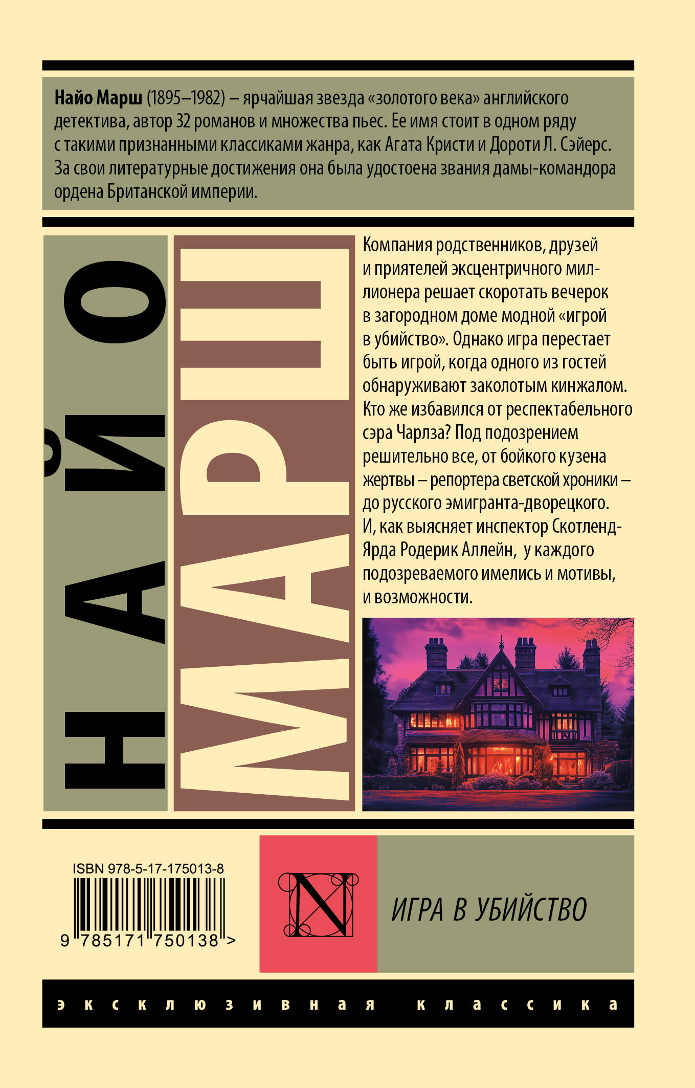 Компания родственников, друзей и приятелей эксцентричного миллионера решает скоротать вечерок в загородном доме модной "игрой в убийство". Однако игра перестает быть игрой, когда одного из гостей обнаруживают заколотым кинжалом. Кто же избавился от респектабельного сэра Чарлза? Под подозрением решительно все, от бойкого кузена жертвы - репортера светской хроники - до русского эмигранта-дворецкого. И, как выясняет инспектор Скотленд-ярда Родерик Аллейн, - у каждого подозреваемого имелись и мотивы, и возможности.| Издательство | Издательство "АСТ" |