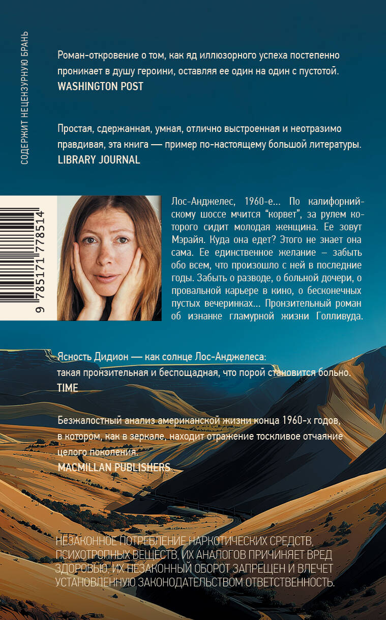 - От автора знаменитых книг «Год магического мышления» и «Синие ночи», ставших классикой мемуарной прозы. - Роман, вскрывающий изнанку блестящего Голливуда. - Точный слепок с жизни американской богемы 1960-х годов. - История о потере ориентиров в мире иллюзий, актуальная и по сей день. - Произведения Дидион задали новый тон американской литературе и уже давно занимают место в ряду ее лучших образцов.| Издательство | Издательство "АСТ" |