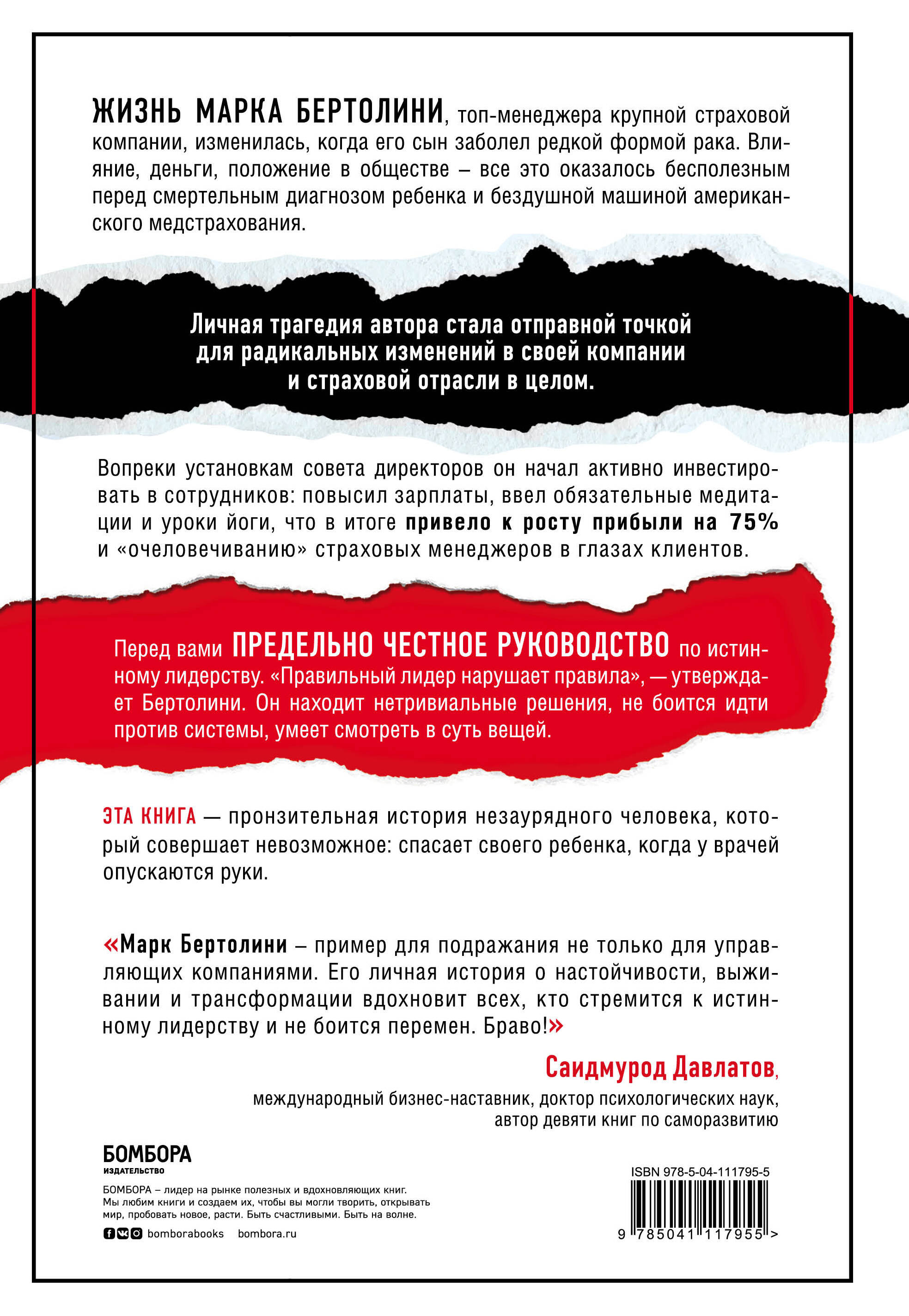 ОБ АВТОРЕ Марк Т. Бертолини был генеральным директором Aetna, диверсифицированной компании здравоохранения Fortune 50 с доходом более 60 миллиардов долларов в 2015 году. Бертолини занял пост генерального директора 29 ноября 2010 года и председателя правления 8 апреля 2011 года, пока Aetna не была продана CVS 28 ноября 2018 года. За беспрецедентный рост прибыли на 75% в 2013 году он получил бонус в размере 30 млн долларов и занял 8 место в рейтинге самых высокооплачиваемых руководителей по версии Wall Street Journal. ОТЗЫВЫ «Руководство Марка Бертолини в Aetna сделало его одним из самых важных новых образцов для подражания - и не только для делового мира. Его личная история о настойчивости, выживании и трансформации вдохновляет всех», - Арианна Хаффингтон, основатель и генеральный директор Thrive Global и автор книги Thrive «Марк Бертолини делится жизненными уроками и уроками лидерства, извлеченными при преодолении экстраординарных проблем на своем личном пути, а также тем, как каждый человек и компания могут внести свой вклад в создание более здорового и лучшего мира». - Марк Бениофф, председатель и экс-генеральный директор Salesforce ЦИТАТЫ • Жизнь - это борьба. Не жди перерывов. Выживают только самые крутые. • Иногда вам приходится игнорировать правила, чтобы сделать то, что нужно, и добраться до восьмой страницы. • Главное - не сбиться с курса, какими бы сильными ни были порывы ветра. • Достижение долгосрочного успеха должно быть целью каждого корпоративного лидера.| Издательство | ООО "Издательство "Эксмо" |