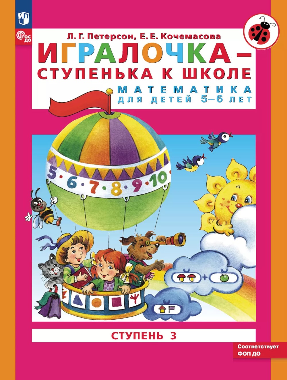 Пособие «Игралочка», ступень 3 предназначено для развития математических представлений детей 5-6 лет. Является составной частью комплекта «Игралочка» для детей 3-7 лет. В комплект также входят программа, методические рекомендации для педагогов со сценариями каждого занятия, демонстрационные и раздаточные материалы. Комплект «Игралочка» ориентирован на развитие у дошкольников мышления, творческих способностей, интереса к математике. Входит в комплексную программу дошкольного образования «Мир открытий». Является начальным звеном непрерывного курса математики «Учусь учиться» от 3 до 15 лет. Его непосредственным продолжением служат учебники математики Л. Г. Петерсон для начальной и основной школы. Комплект «Игралочка» может использоваться в системе дошкольного образования и для индивидуальной работы с детьми.