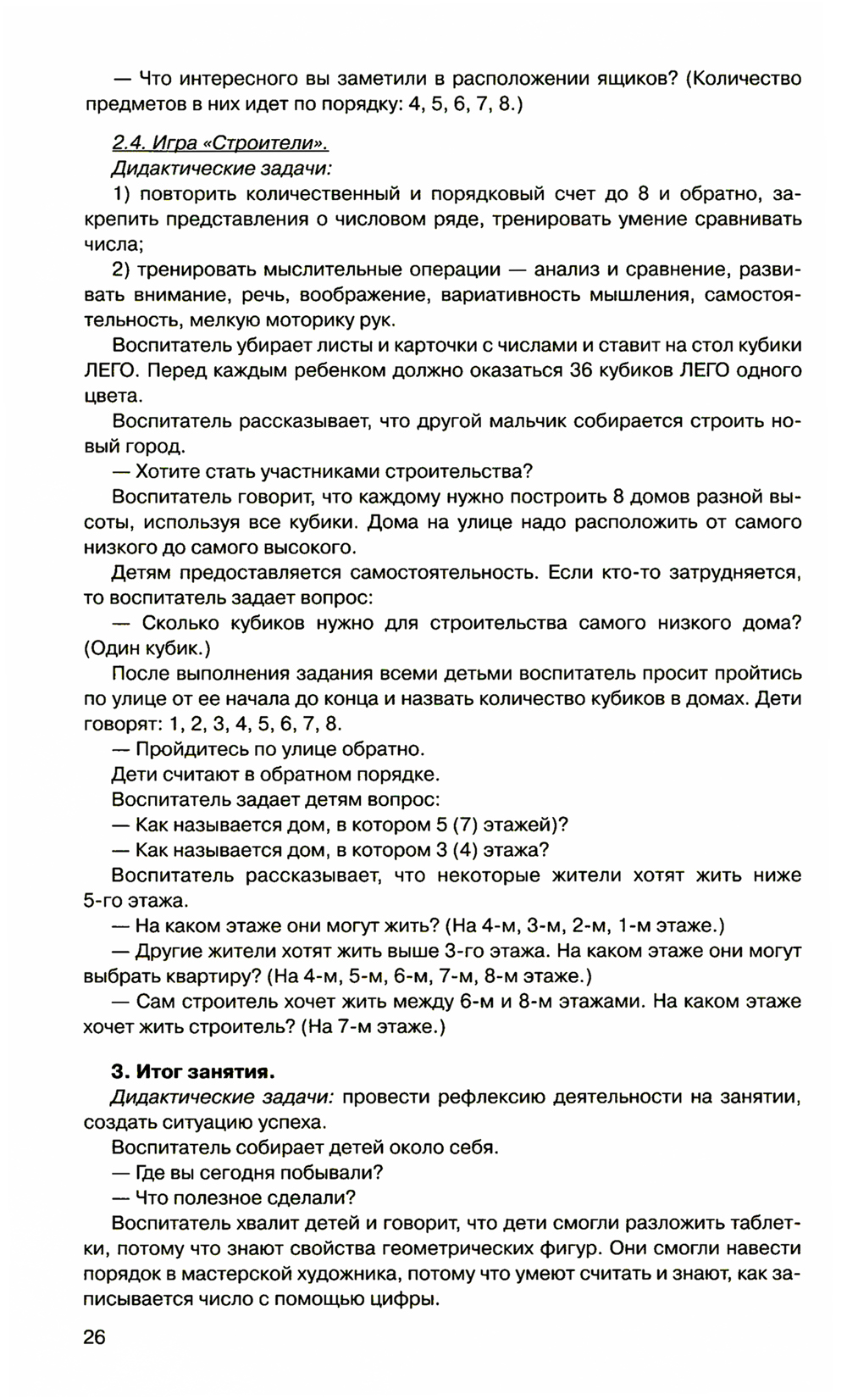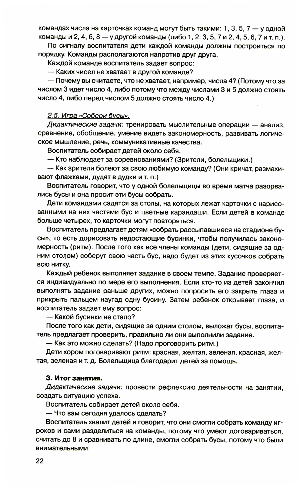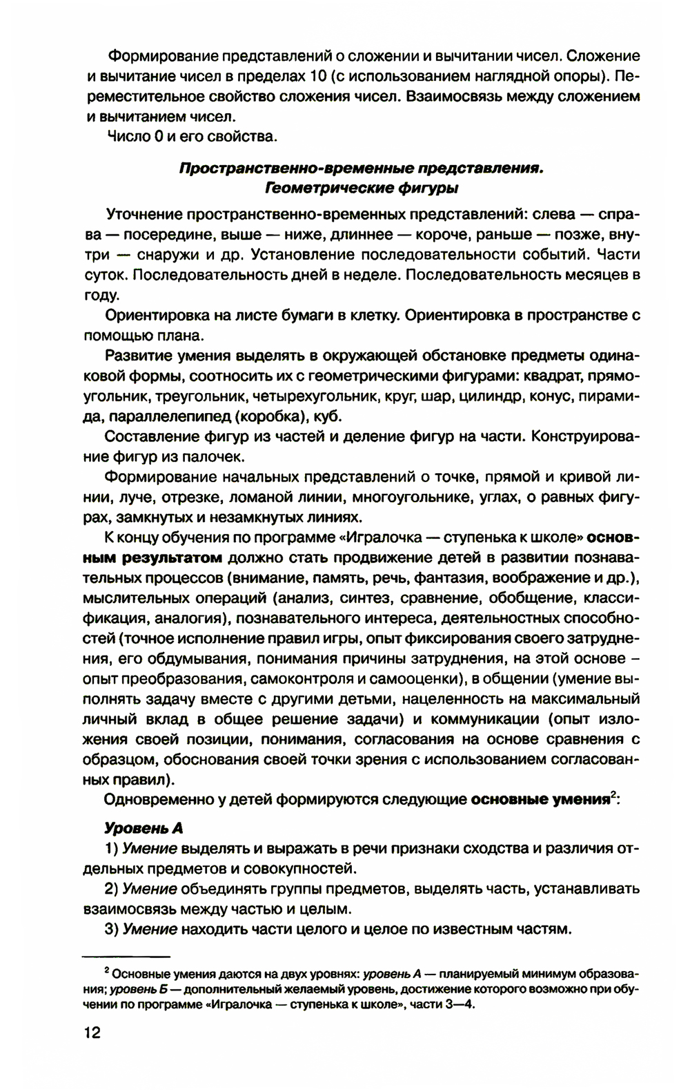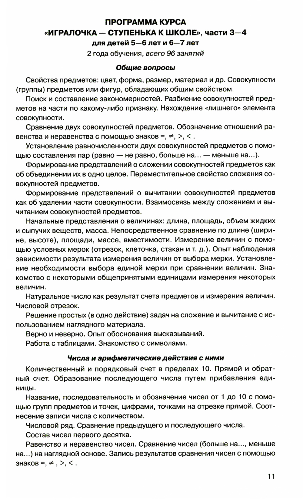 Методическое пособие «Игралочка - ступенька к школе», часть 3 предназначено для развития математических представлений детей 5-6 лет. Содержит описание концепции, программы и технологии проведения занятий с детьми на основе деятельностного метода Л. Г. Петерсон (технологии «Ситуация»). Является составной частью учебно-методического комплекта «Игралочка» для детей 3-7 лет. В комплект также входят рабочие тетради, программа, демонстрационные и раздаточные материалы к каждому занятию. Учебно-методический комплект «Игралочка» ориентирован на развитие у дошкольников мышления, творческих способностей, интереса к математике. Является начальным звеном непрерывного курса математики « Учусь учиться » от 3 до 15 лет. Его непосредственным продолжением служат учебники математики Л. Г. Петерсон для начальной и основной школы. Входит в комплексную программу дошкольного образования «Мир открытий». Может использоваться в качестве парциальной программы математического развития детей в дошкольных образовательных организациях всех типов и для индивидуальных занятий с детьми. Пособие адресовано специалистам по дошкольному образованию, студентам педагогических колледжей и вузов.| Издательство | Бином. Лаборатория знаний |