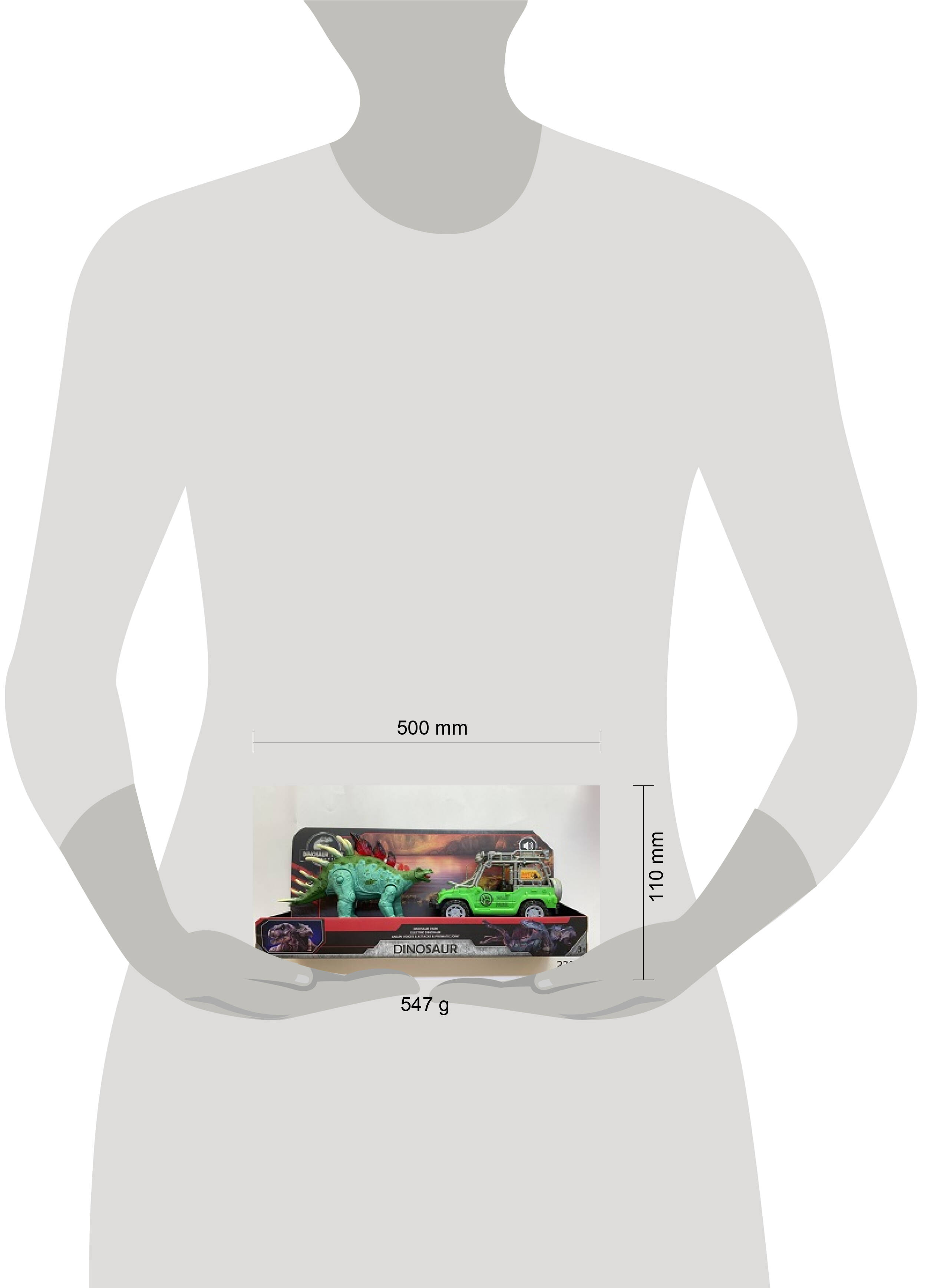 Аннотация: Игровой набор для детей со световым и звуковым эффектом "Фигурка динозавра - Стегозавр с зеленым джипом"