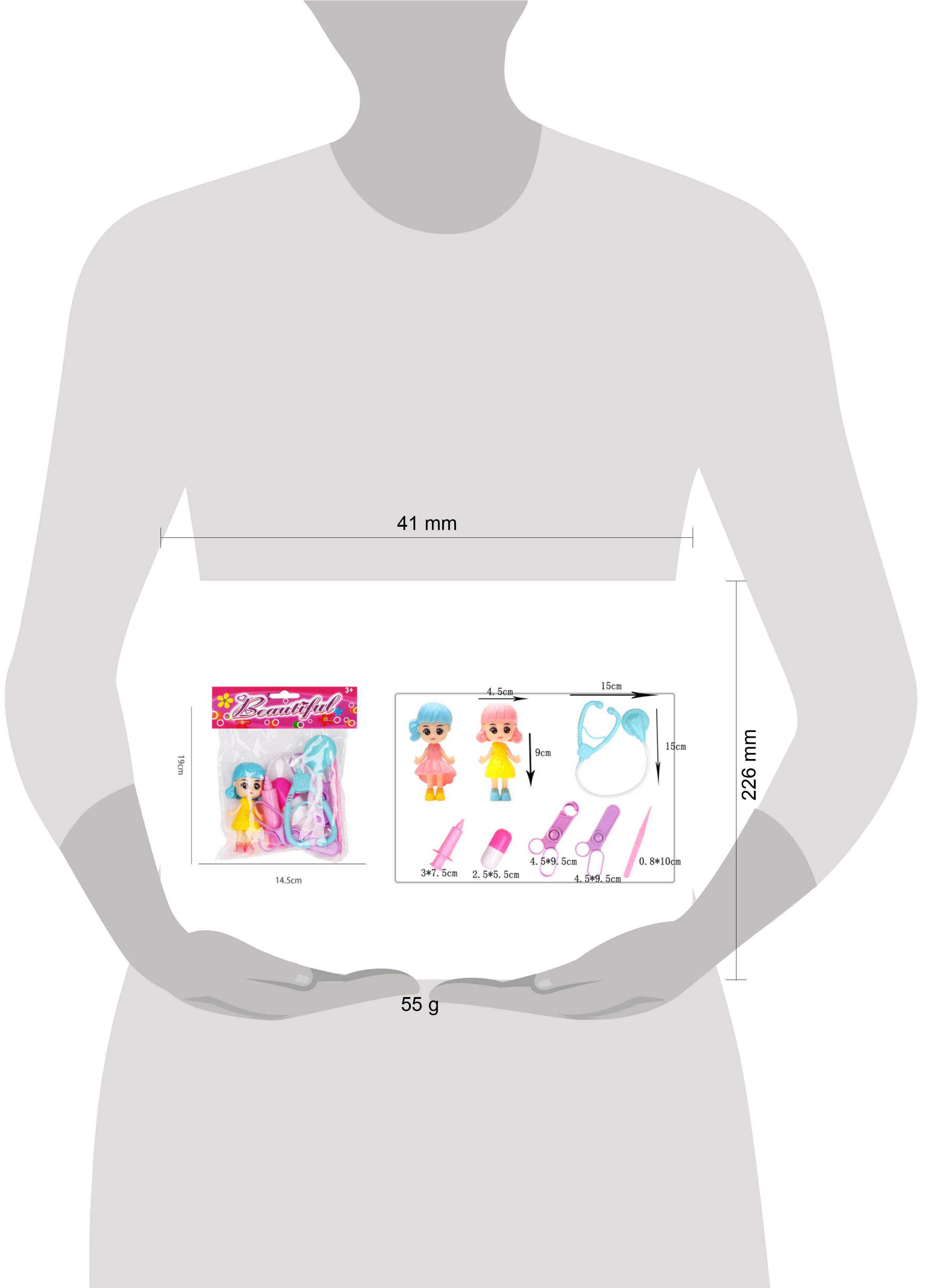 Игровой набор "Юный доктор"(7 дет.,мини куколка 9х4,5 см, цвет микс, в пакете) ( Арт. Y20118003)