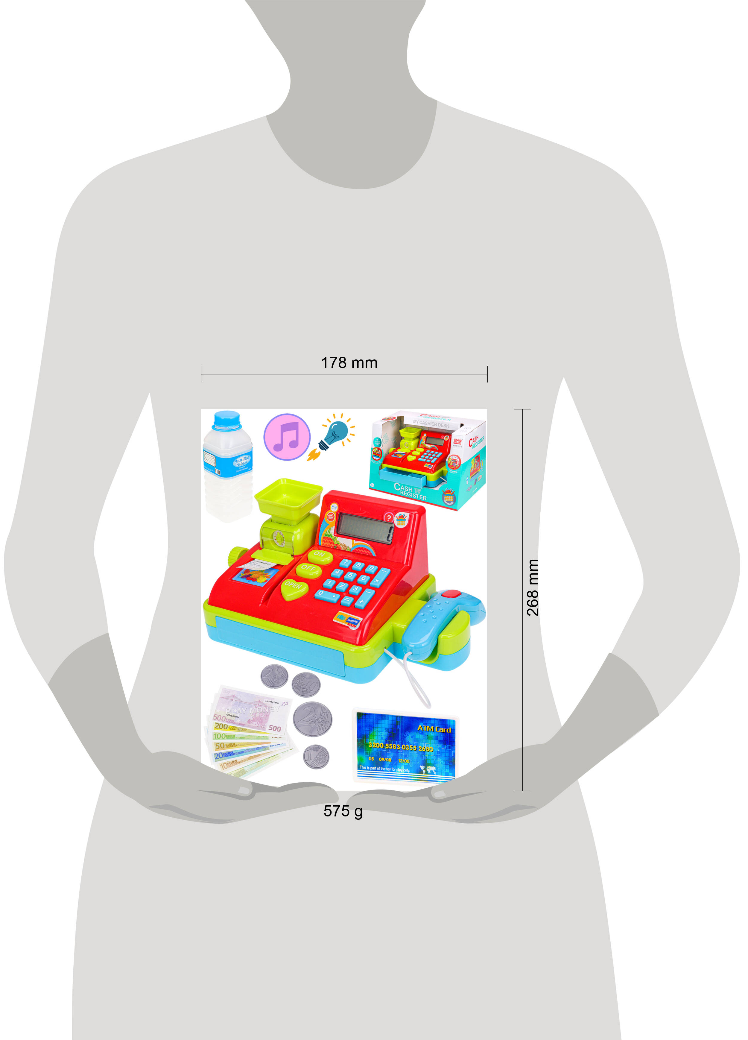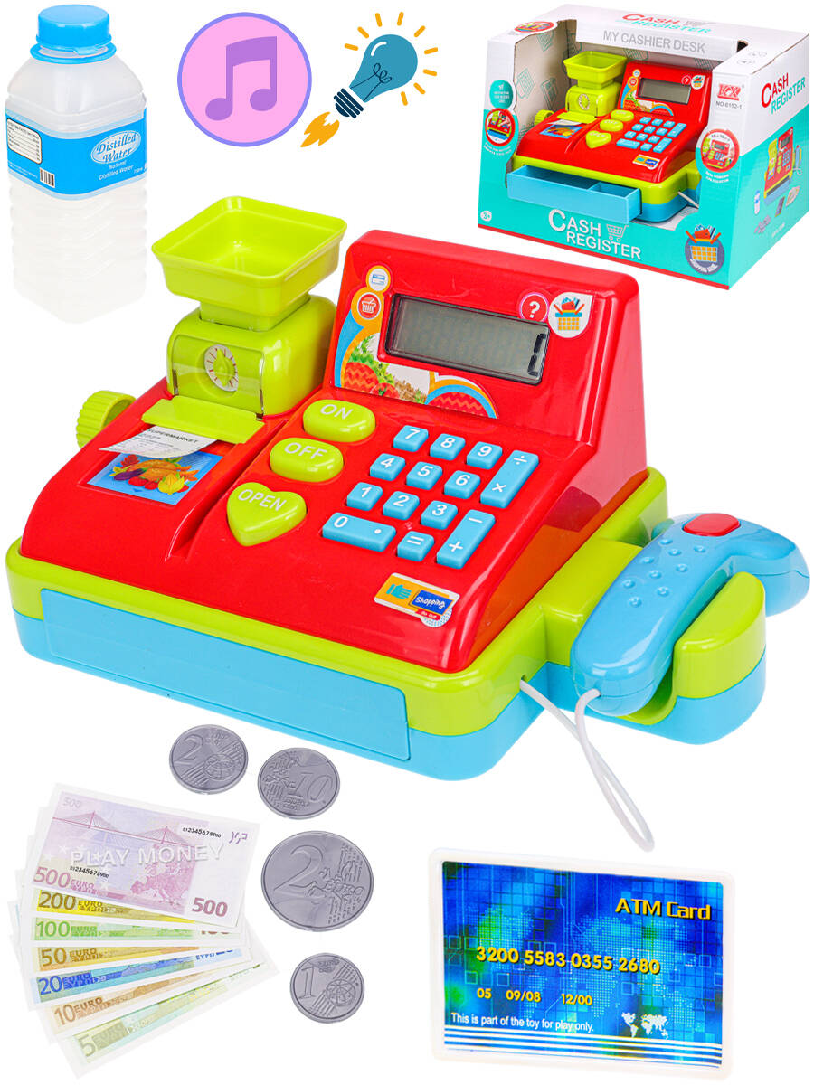 Игровой набор Касса со световыми и звуковыми эффектами понравится любому ребёнку! Игра в "магазин" - одна из любимых сюжетно-ролевых игр всех детей. С детской кассой можно создать настоящий магазин прямо у себя дома, а ребёнок сможет выполнять разные роли: продавца, кассира или покупателя. В игровой форме малыши легко разовьют математические способности, наблюдательность, воображение и внимательность. Батарейки 2 штуки АА приобретаются отдельно.