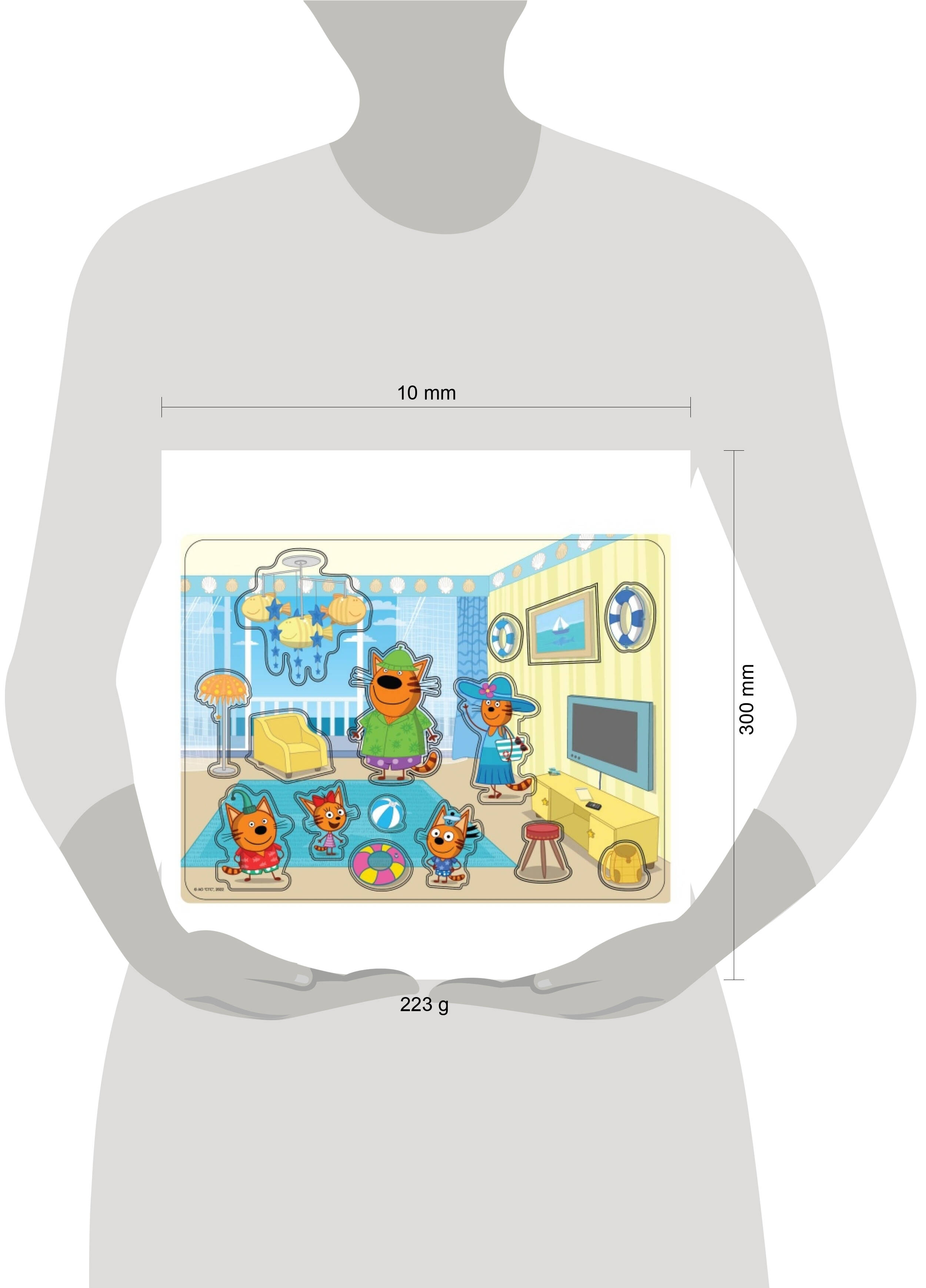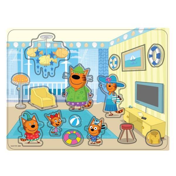 Деревянная игрушка с вкладышами "Три кота" ТМ "Буратино" - отличная развивающая игра для маленьких поклонников мультсериала про весёлых и любознательных котят: - красочная игровая основа - 15 вкладышей с ручками - оригинальный дизайн - экологичный материал: натуральное дерево - любимые герои Вкладыши представляют собой игровое поле с отверстиями разного размера и формы. Каждому отверстию соответствует определенная деталь. В процессе игры ребёнок интуитивно или с помощью взрослого находит предназначенное место для каждой детали. На поле имеются подсказки и места сформированы по заданному алгоритму. Для наибольшего удобства каждая деталь оснащена специальной ручкой, что позволяет легко перемещать вкладыш в нужное место. В весёлой и не принужденной игре ваш малыш научится различать формы, сочетать цвета и разовьет мелкую моторику. Игра с вкладышами ТМ "Буратино" будет способствовать развитию у детей: - мелкой моторики - логического мышления - внимания - памяти Размер: 30 х 22,5 см. Материал: дерево. Рекомендовано детям от 3-х лет.
