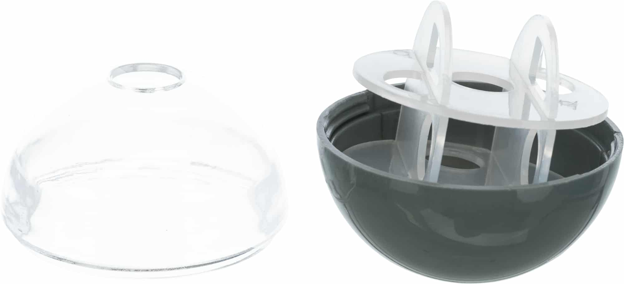 Мяч-лакомка для кошек, 5 см Игрушка для кошек. Мяч для прятания лакомств. Пластиковый шар. Лакомство выпадает, когда кошка играет с ним и размахивает руками. Лабиринт, встроенный в мяч, не позволяет лакомству выпасть сразу. Игра с мячом побуждает кошку думать. Диаметр: 5 см