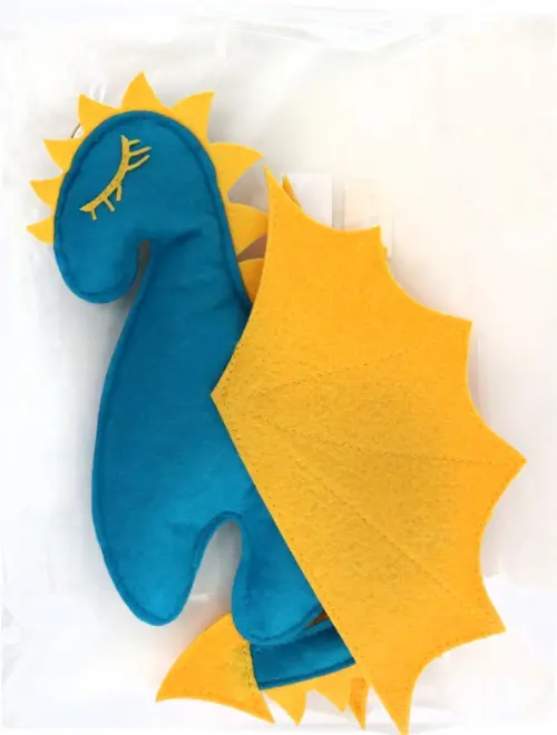 Яркая игрушка сшита из искусственного фетра, с экологичным наполнителем внутри, с удобной петелькой. Благодаря оптимальному размеру игрушку можно брать с собой на прогулку, в путешествие. Стильное оформление, в виде гребня, длинных ресничек, ярких крыльев и хвоста, гарантируют, что ваш новый год и рождество будут заполнены радостью и восторгом! Когда вы выбираете фигурку дракона в качестве презента, вы дарите не только красивый предмет, но и положительные эмоции и пожелания.