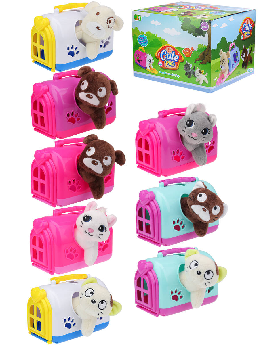 Игрушка мягкая "Домашний питомец в переноске-1"(12шт.в ш\б,6 видов микс)15*7*11 см(Арт.1892744)кр 12