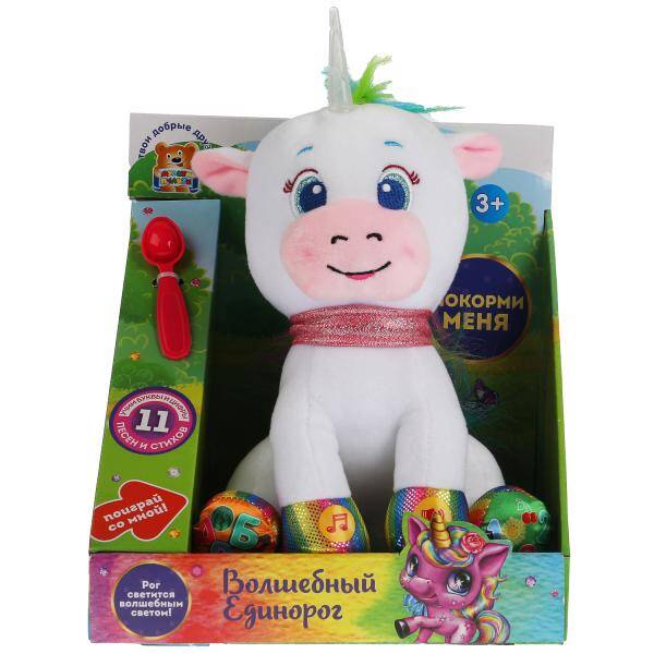 Игрушка мягкая Шаинский музыка единорог учим буквы, цифры, рог свет 25см МУЛЬТИ-ПУЛЬТИ в кор.12шт