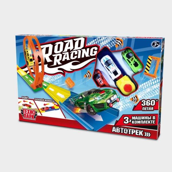 Аннотация: Игрушка пластик ROAD RACING автотрек 3 машинки, 1 петля, кор. Технопарк в кор.2*30шт