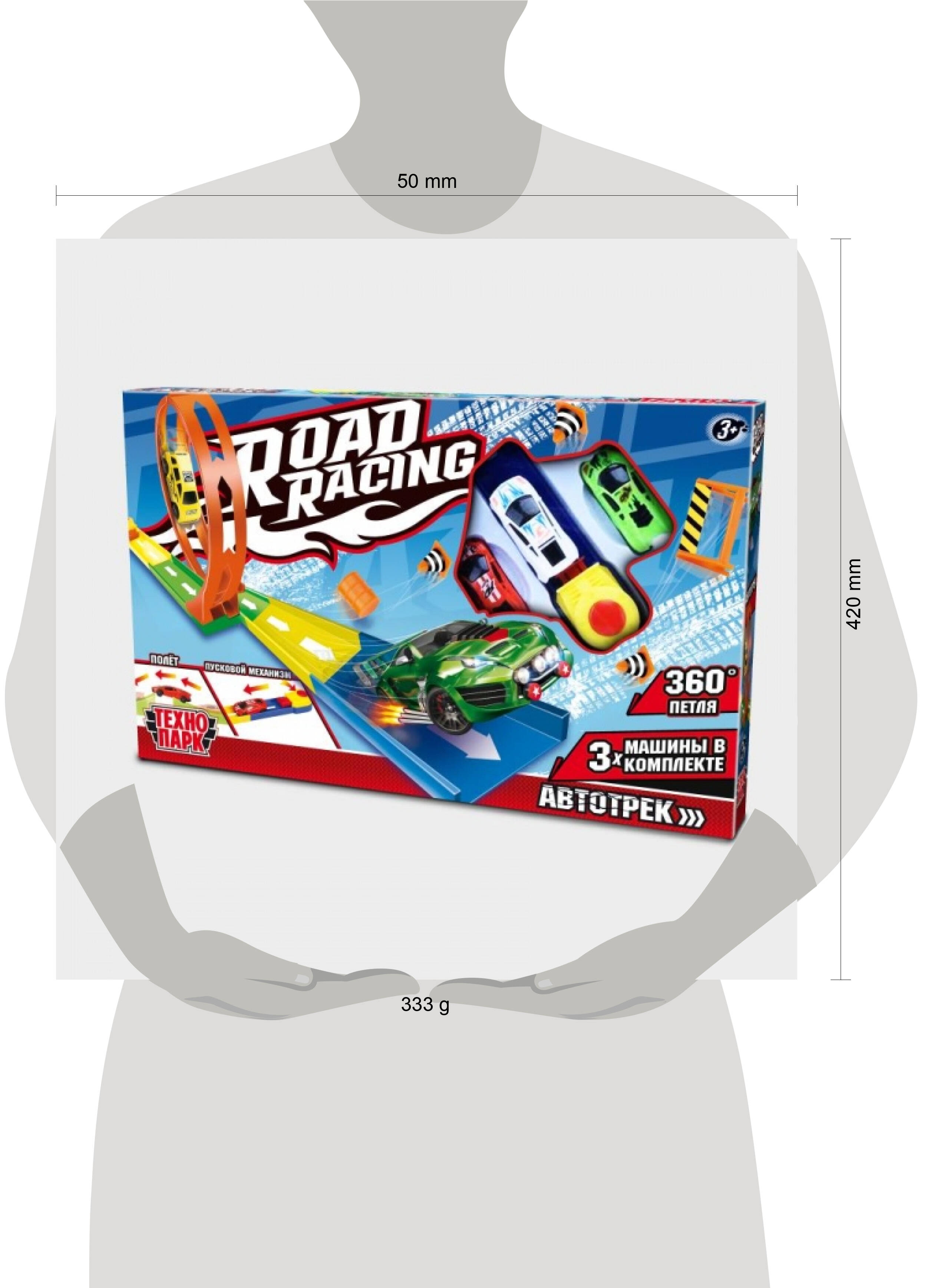 Игрушка пластик ROAD RACING автотрек 3 машинки, 1 петля, кор. Технопарк в кор.2*30шт