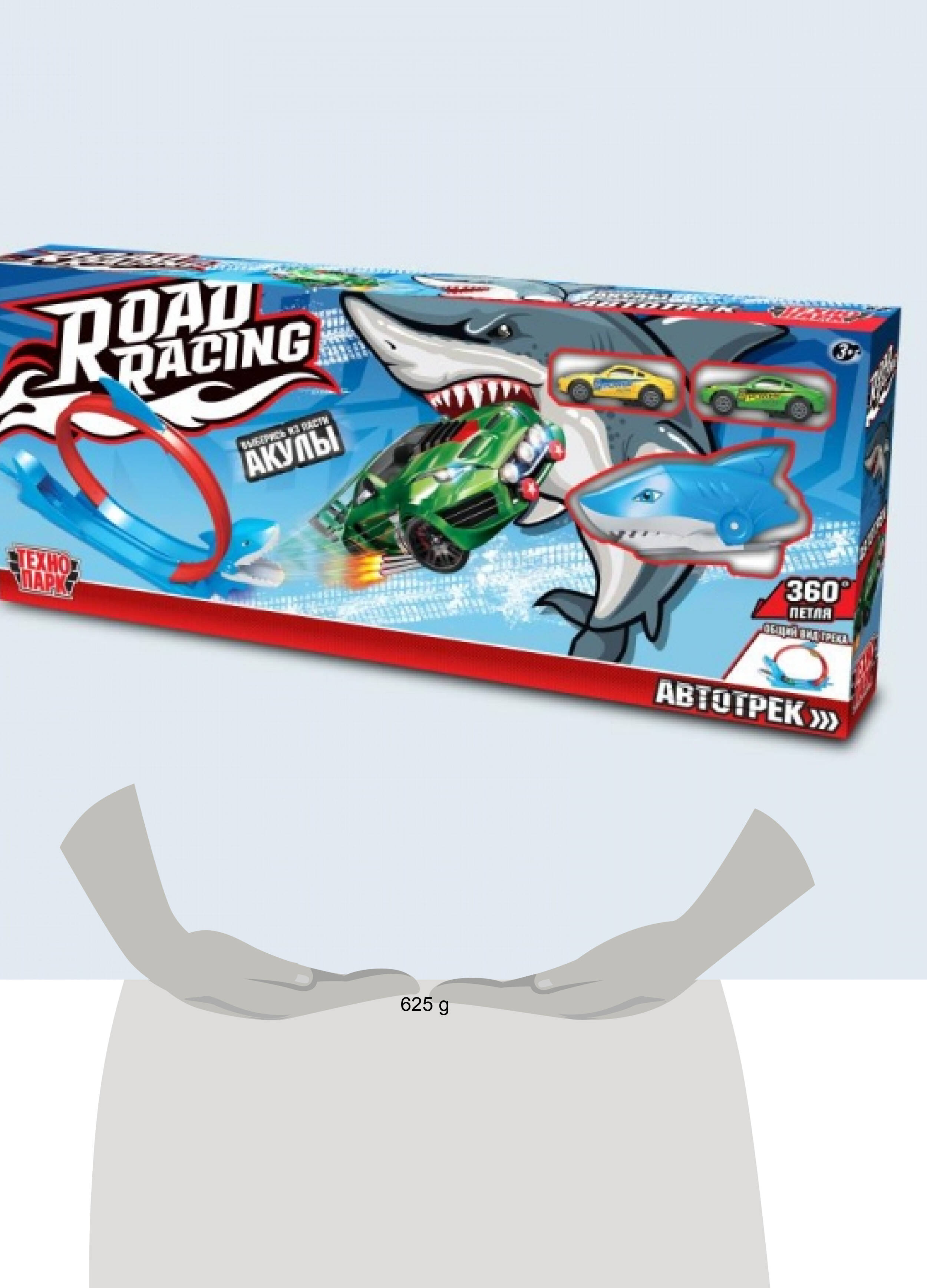 Аннотация: Игрушка пластик ROAD RACING автотрек с акулой. 2 машинки, 1 петля, кор. Технопарк в кор.2*12шт