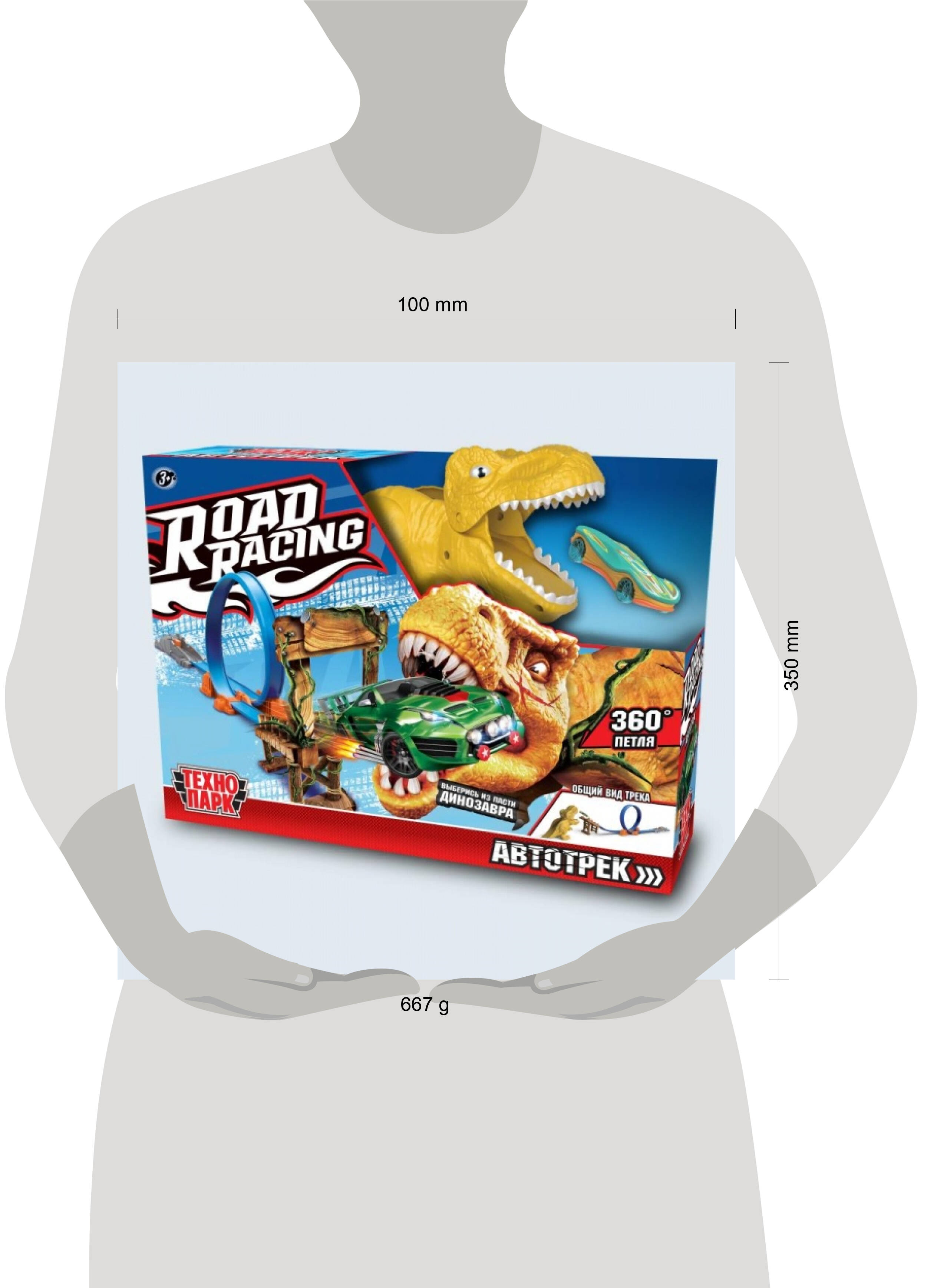 Игрушка пластик ROAD RACING автотрек с динозавром. 1 машинка, 1 петля, кор. Технопарк в кор.2*15шт