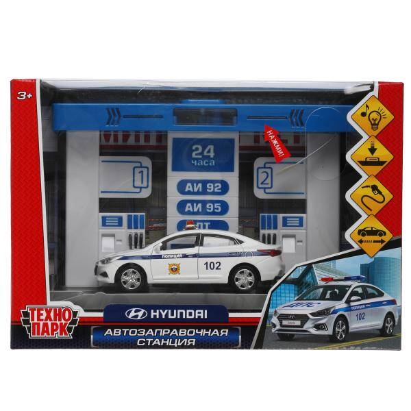 Игровой набор "Автозаправочная станция" ТМ "Технопарк" обязательно понравится маленькому автолюбителю: - световые эффекты - звуковое сопровождение - в комплекте: станция, модель машины Hyundai Solaris - кнопка сверху - подвижные шланги - инерционный механизм (поставьте машинку на ровную поверхность, потяните назад и отпустите - она тут же поедет вперёд) Этот набор с реалистичной, детально проработанной, моделью машины и станцией для заправки непременно увлечёт вашего ребёнка и вдохновит на множество новых игровых сюжетов. Кроме того, эта игрушка познакомит малыша с марками автомобилей. Игра с набором ТМ "Технопарк" развивает: - воображение - координацию движений - внимание - ловкость - моторику Размер: 22 х 13 х 8 см. Материал: пластмасса + металл. Работает от 3-х батареек типа LR44 (в комплекте). Рекомендовано детям от 3-х лет.
