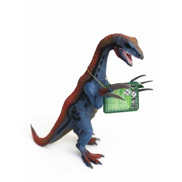 Динозавр Теризинозавр жил много лет назад в конце мелового периода и отличался костями огромного размера. Рассматривая игрушечную фигурку, ребёнок отметит его длинные когти, яркий окрас и пасть настоящего хищника с длинными острыми зубами. С таким динозавром можно создавать различные интересные сюжеты, изучать доисторический мир или просто собирать коллекцию. Развивает воображение, расширяет кругозор. Высота фигурки: 22 см. Рекомендуется детям от 3 лет.