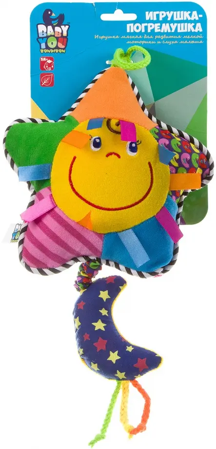 Мягкие развивающие игрушки, детали которых выполнены из безопасных материалов, являются первыми учителями детей. Именно такие игрушки расскажут малышам об окружающем мире. Они развивают зрение, слух, и передают малышами их первые тактильные ощущения. Игрушка имеет подвес и шнурочек, который удлиняется при растяжении. С обратной стороны у игрушки есть зеркальце. Яркие и качественные игрушки ТМ BABY YOU BONDIBON формируют тактильные ощущения, восприятие звуков, цветов и форм. Посредством игры эти игрушки развивают мелкую моторику и воображение Вашего ребенка.