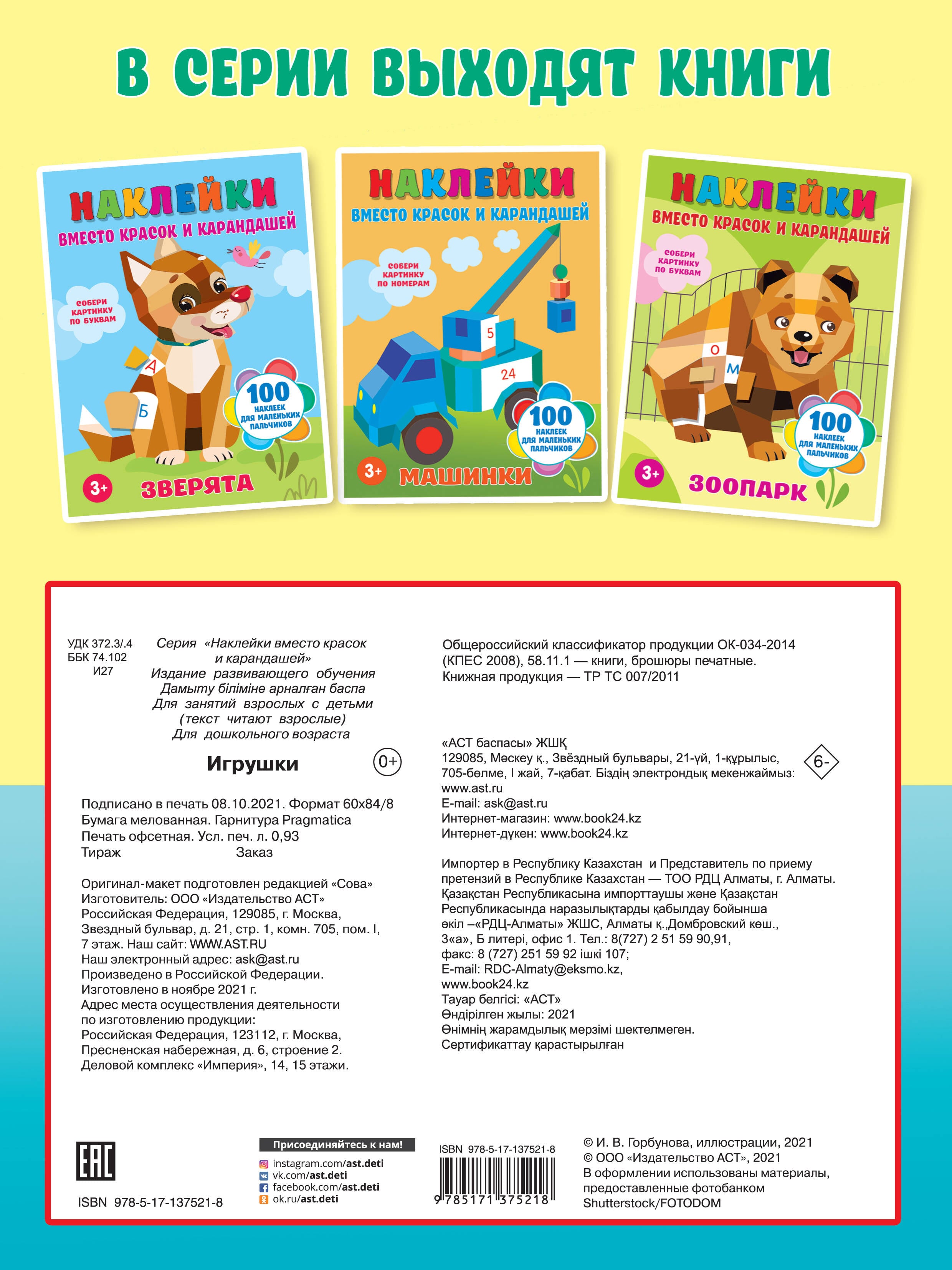 О чем эта книга В новой серии книг «Наклейки вместо красок и карандашей» - игровые задания с геометрическими стикерами, необыкновенно популярные во всем мире. В замечательной книжке ребята увидят игрушки, которые можно раскрасить стикерами, подобрав наклейки по номерам или по буквам алфавита. Создать картинку, «раскрасив» ее стикерами, - увлекательное занятие на развитие логики, памяти, внимания, мелкой моторики. Кому эта книга будет интересна Книжка для всех, кто любит рисовать и своими руками создавать коллажи из наклеек. Каковы особенности этой книги Более 100 наклеек для создания ярких классных картинок это: • Очень интересная и полезная игра для детей. • Уникальный метод развития мелкой моторики, логического и пространственного мышления. • Ребенок сможет своими руками сложить мозаику, шаг за шагом приклеивая на «зашифрованное» поле рисунка фигурки-наклейки. • Интересные задания помогут друзьям не только интересно провести время, но и проявить фантазию, креатив и наблюдательность. Рисуем наклейками, развиваем интеллект, запоминаем цифры и буквы алфавита!| Издательство | ИЗДАТЕЛЬСТВО "АСТ" |